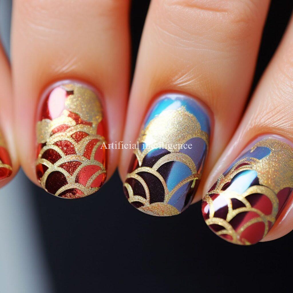 和モダン風波模様のネイルをコンセプトにAIイラストツールで架空の画像を生成しました。