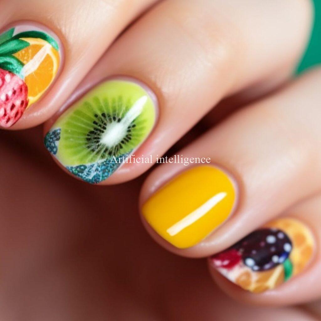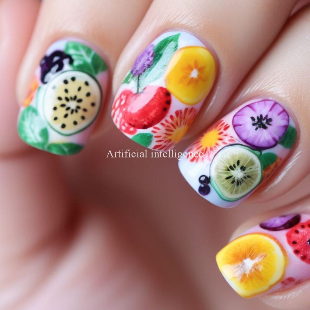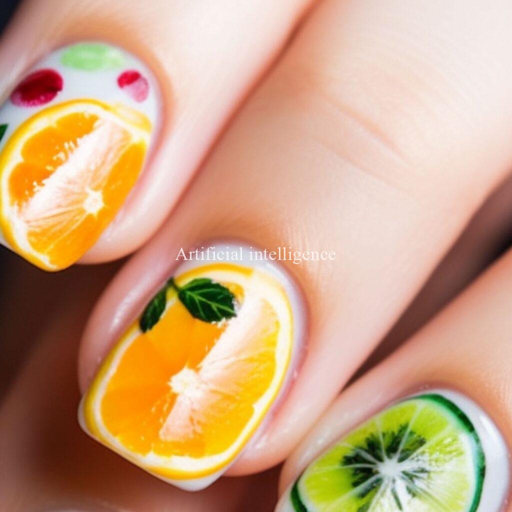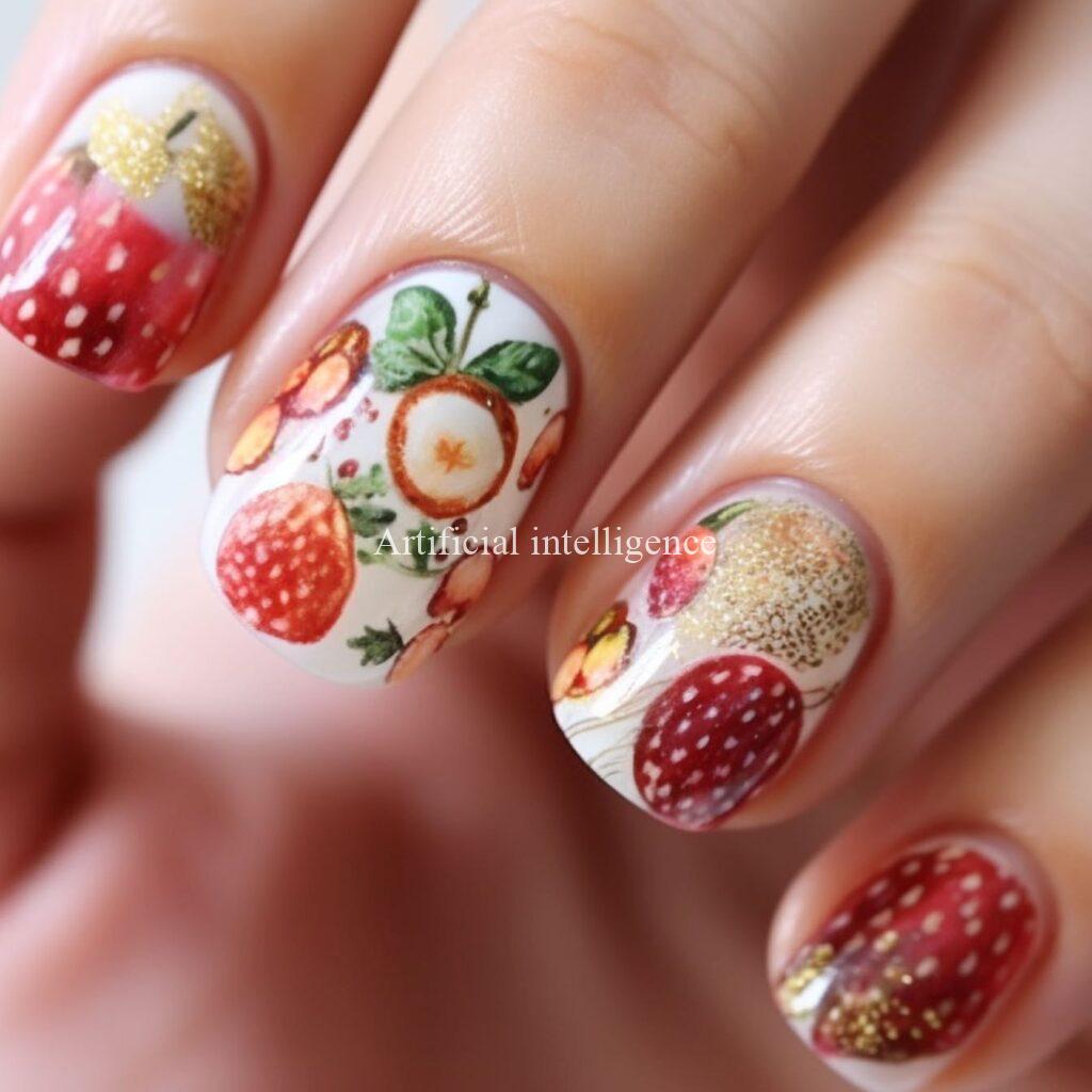 カントリー風フルーツネイルをコンセプトにAIイラストツールで架空の画像を生成しました。