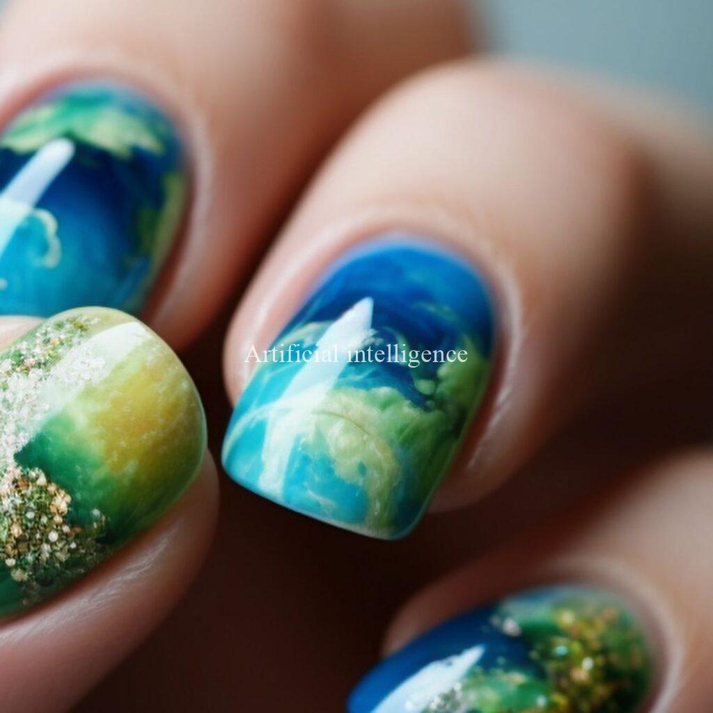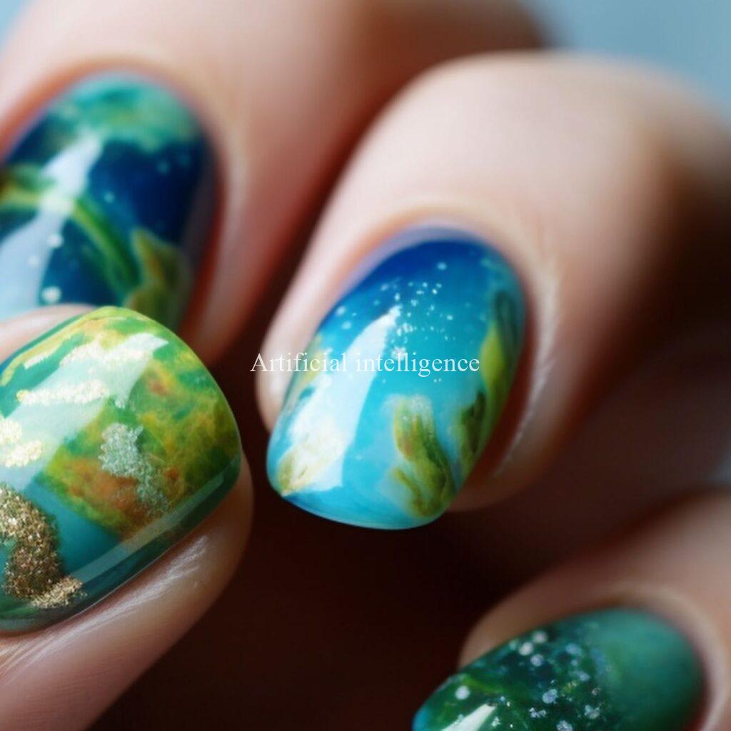 地球儀のアースデーネイル 🌎をコンセプトにAIイラストツールで架空の画像を生成しました。