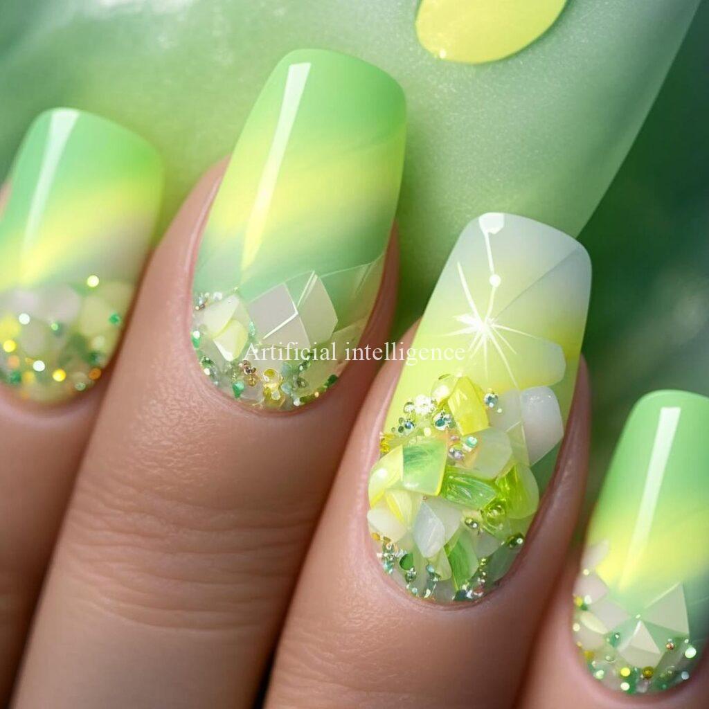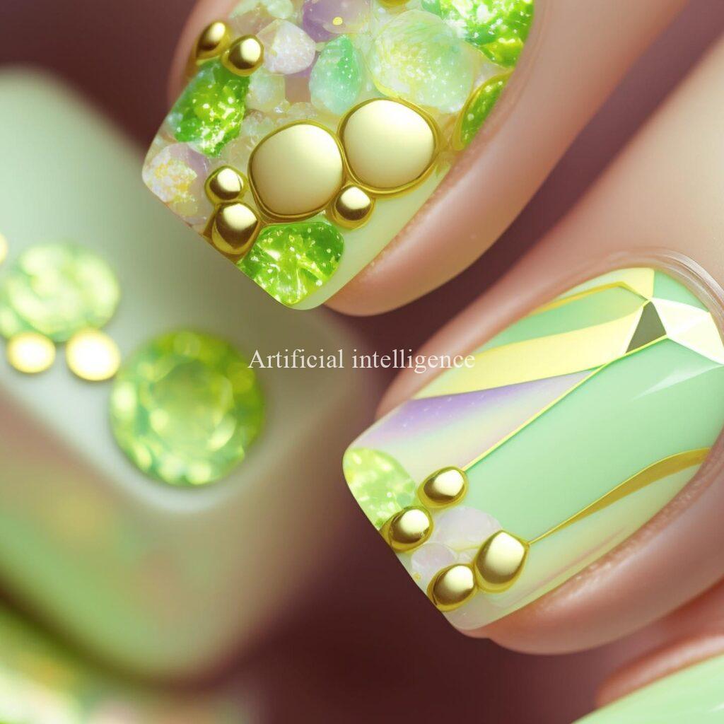 ペリドットとライムのネイルをコンセプトにAIイラストツールで架空の画像を生成しました。