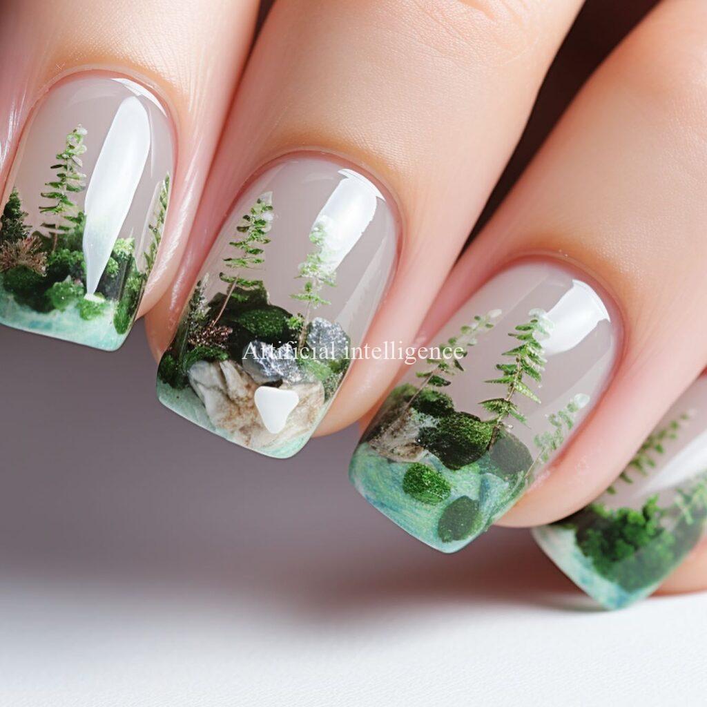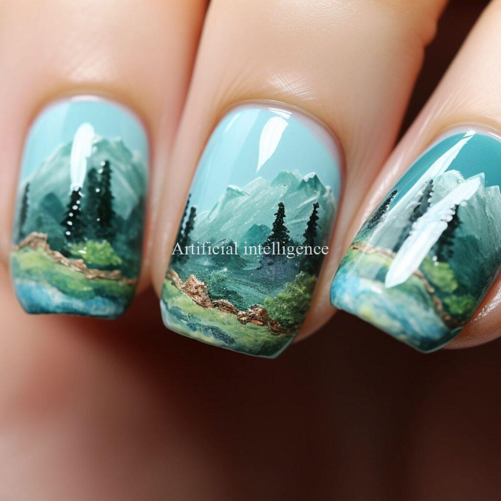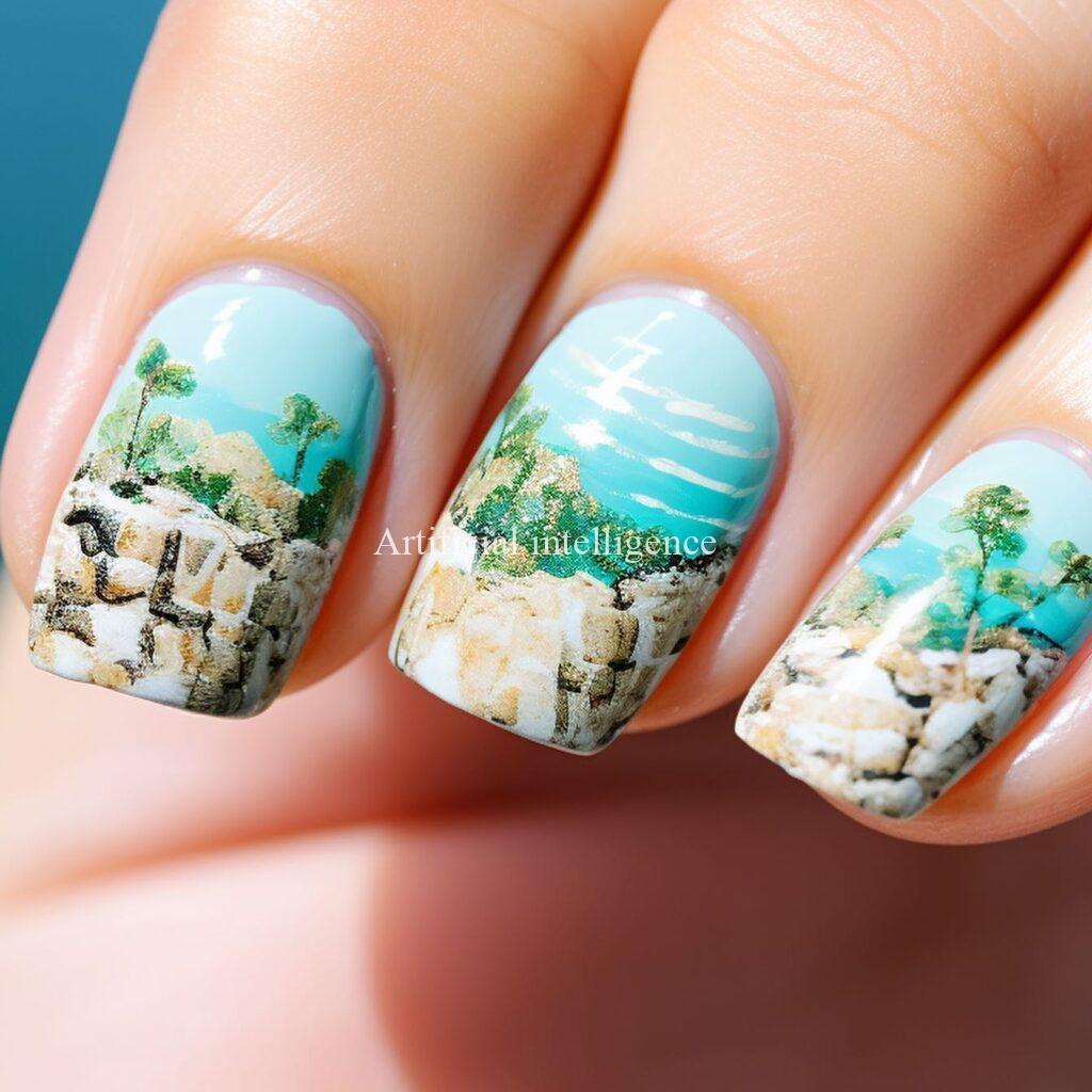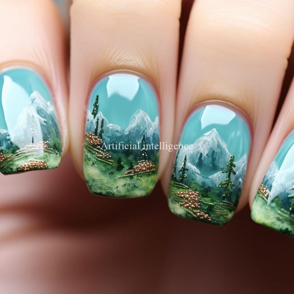 夏の風景ネイル 山編⛰️をコンセプトにAIイラストツールで架空の画像を生成しました。