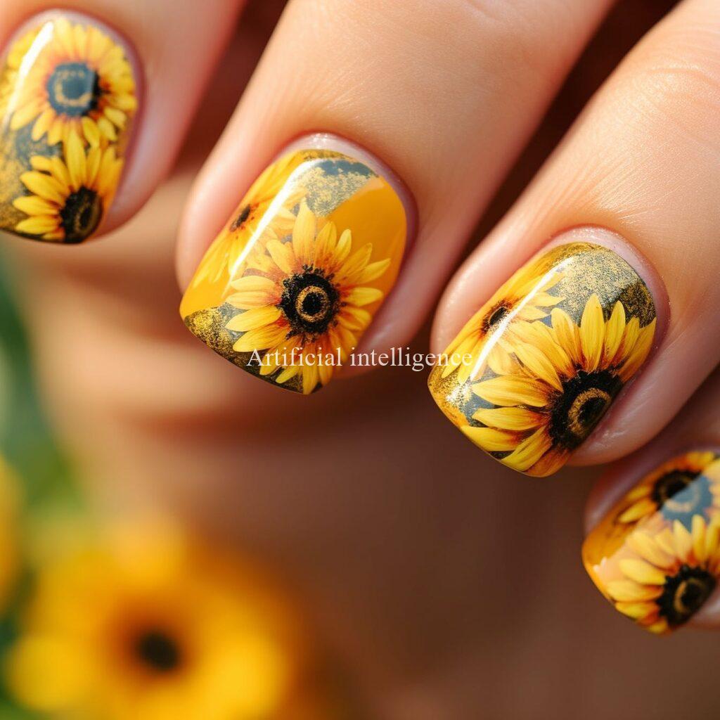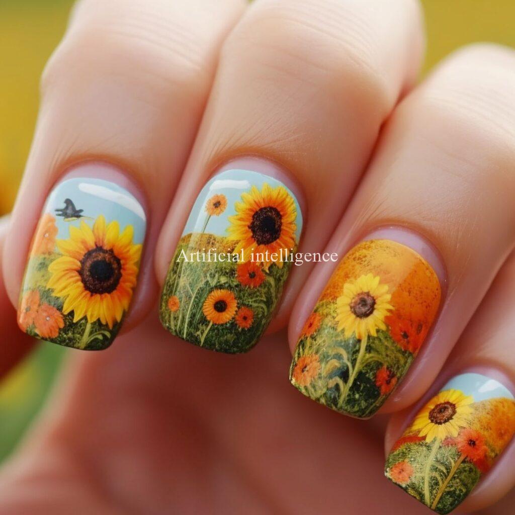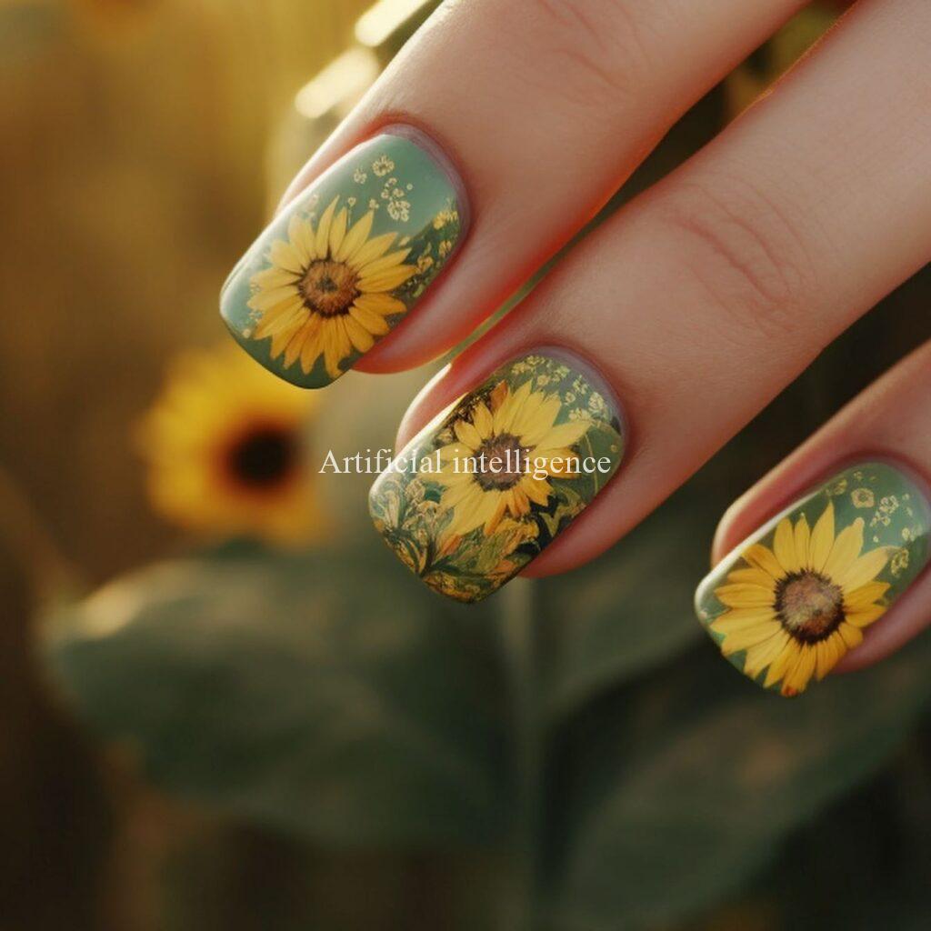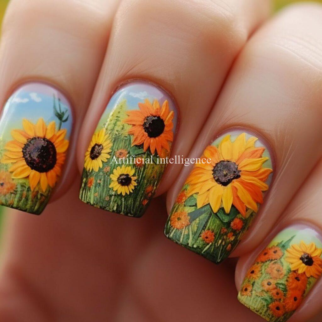 ひまわり畑の絵画風ネイルをコンセプトにAIイラストツールで架空の画像を生成しました。