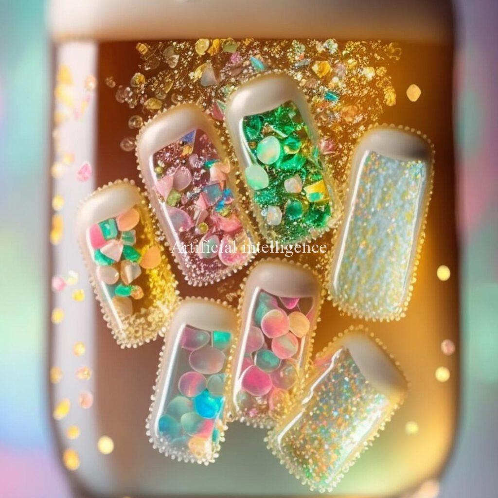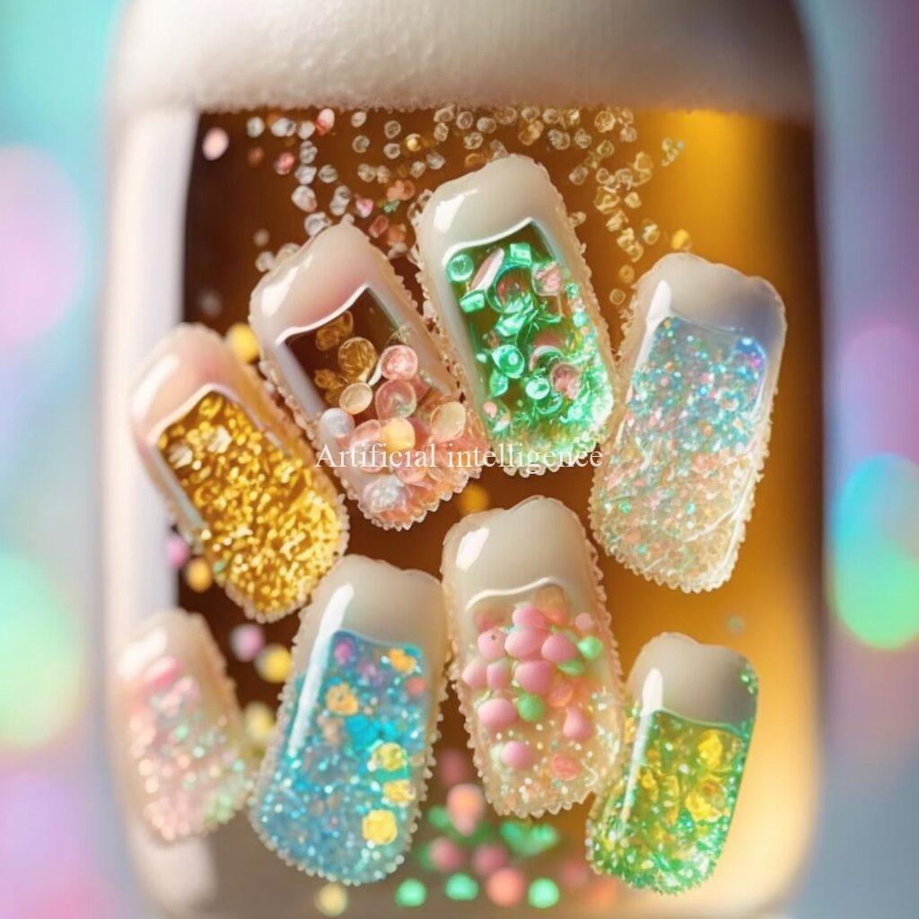 乾杯🍺シュワシュワネイルをコンセプトにAIイラストツールで架空の画像を生成しました。