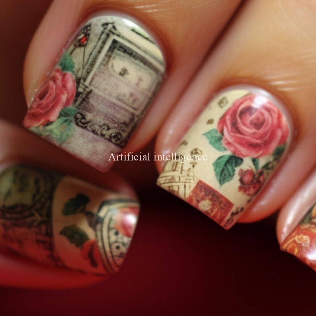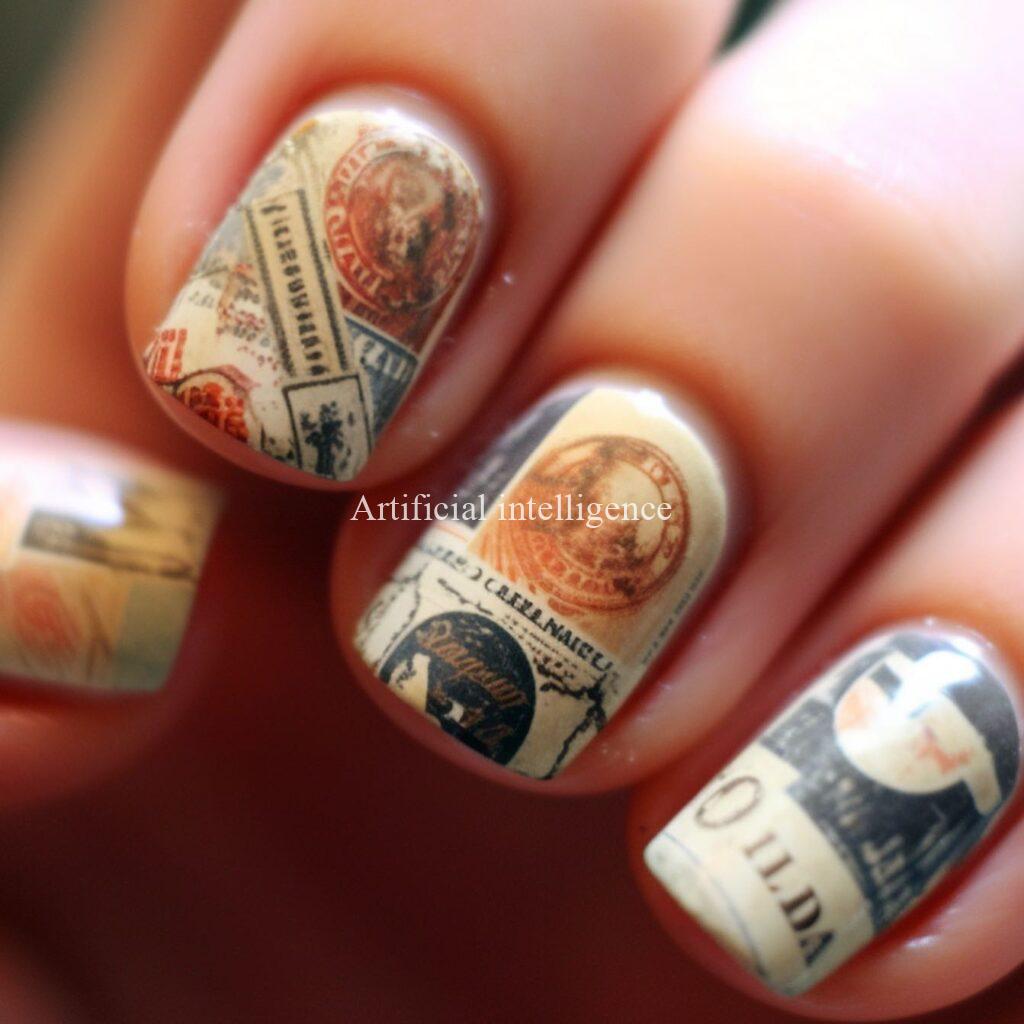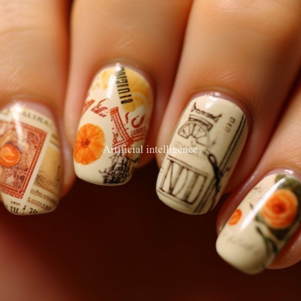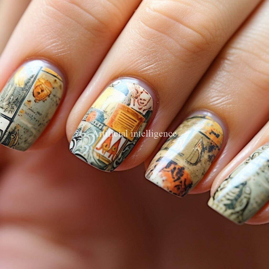 レトロな英字新聞風ネイル 📰をコンセプトにAIイラストツールで架空の画像を生成しました。