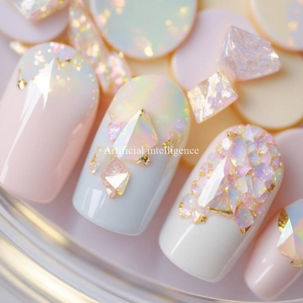 淡色ミルキーネイルチップをコンセプトにAIイラストツールで架空の画像を生成しました。