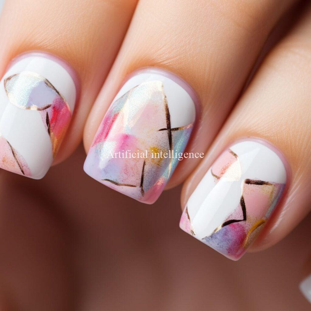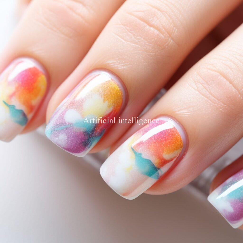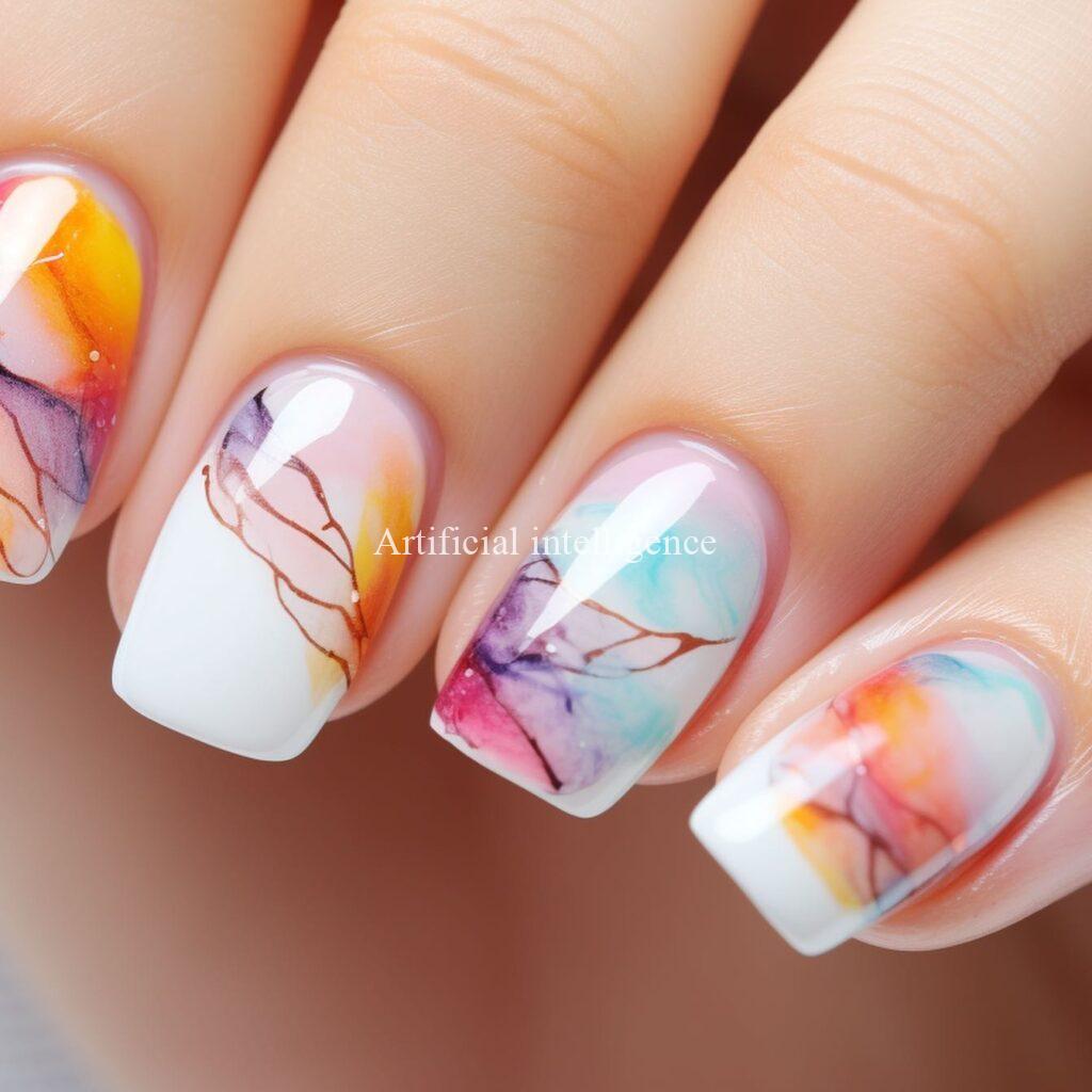 白ベースの水彩風ネイルをコンセプトにAIイラストツールで架空の画像を生成しました。