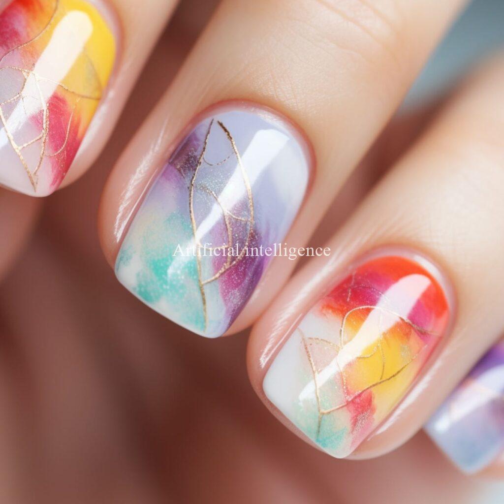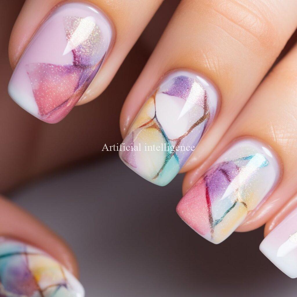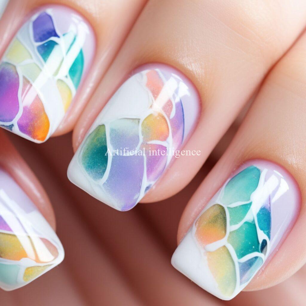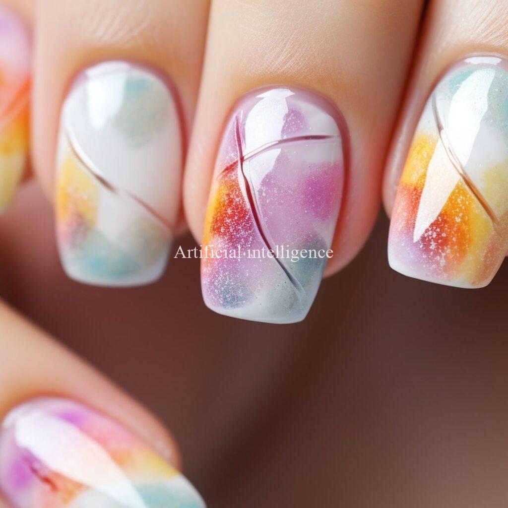 白ベースの水彩風ネイルをコンセプトにAIイラストツールで架空の画像を生成しました。