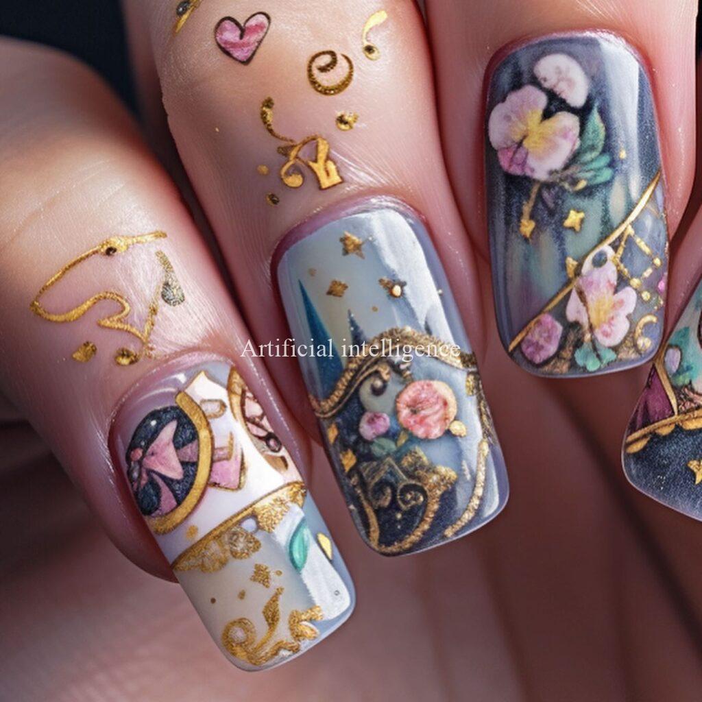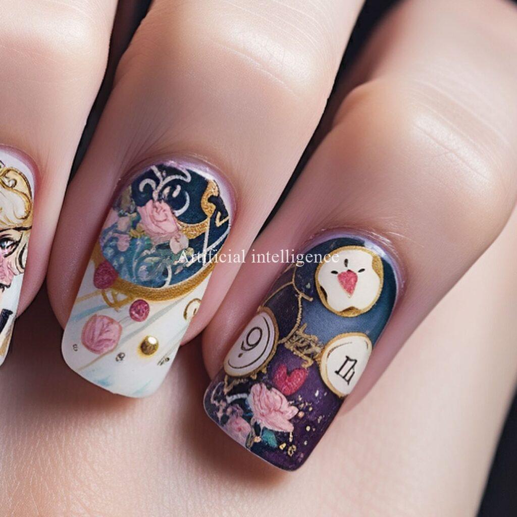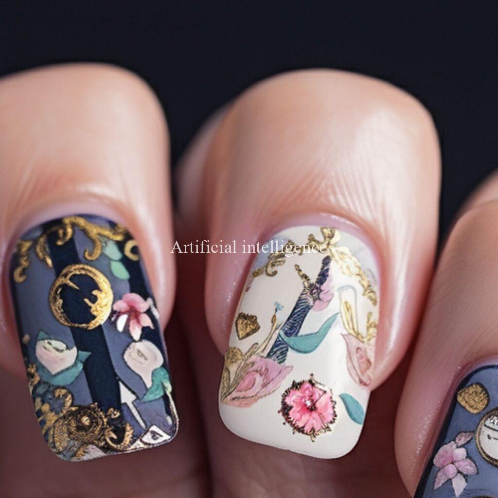 ワンダーランド風ネイルをコンセプトにAIイラストツールで架空の画像を生成しました。