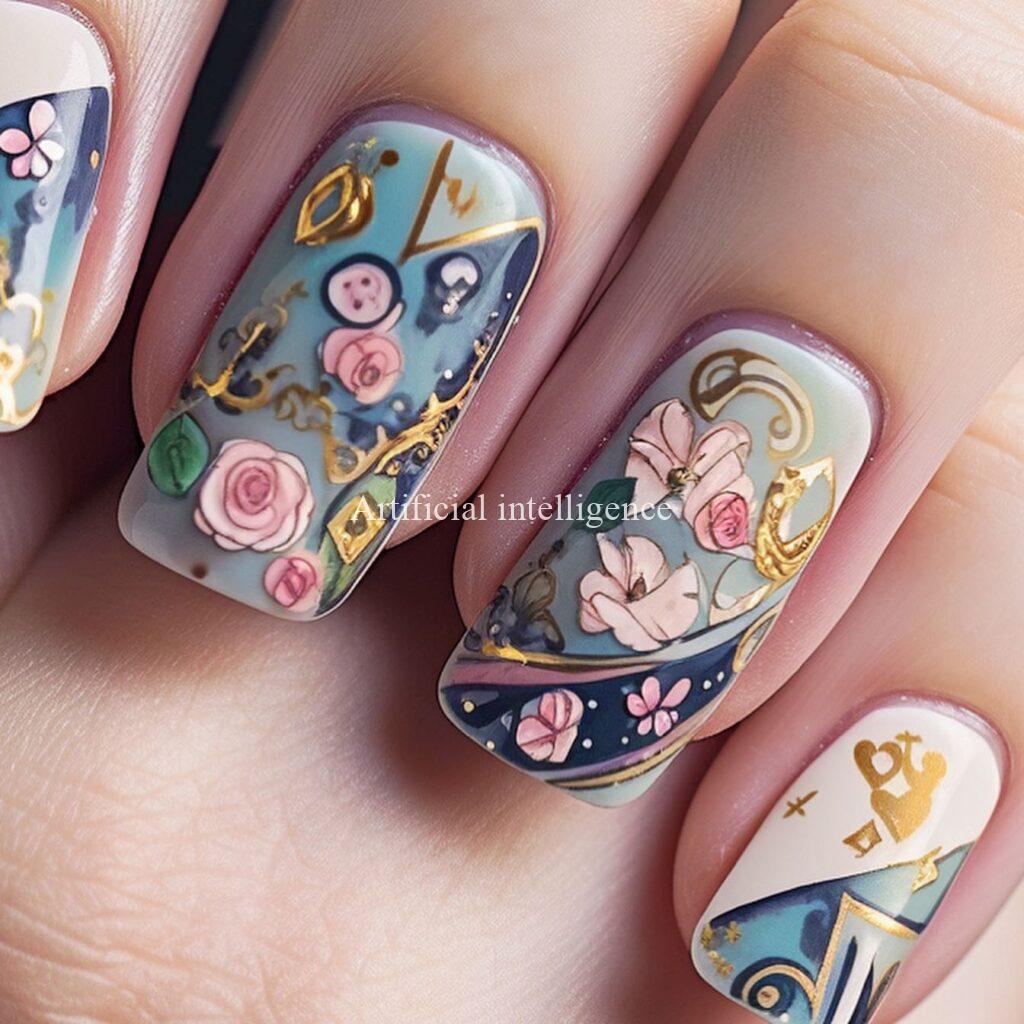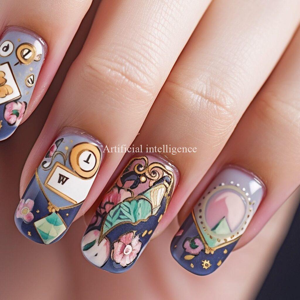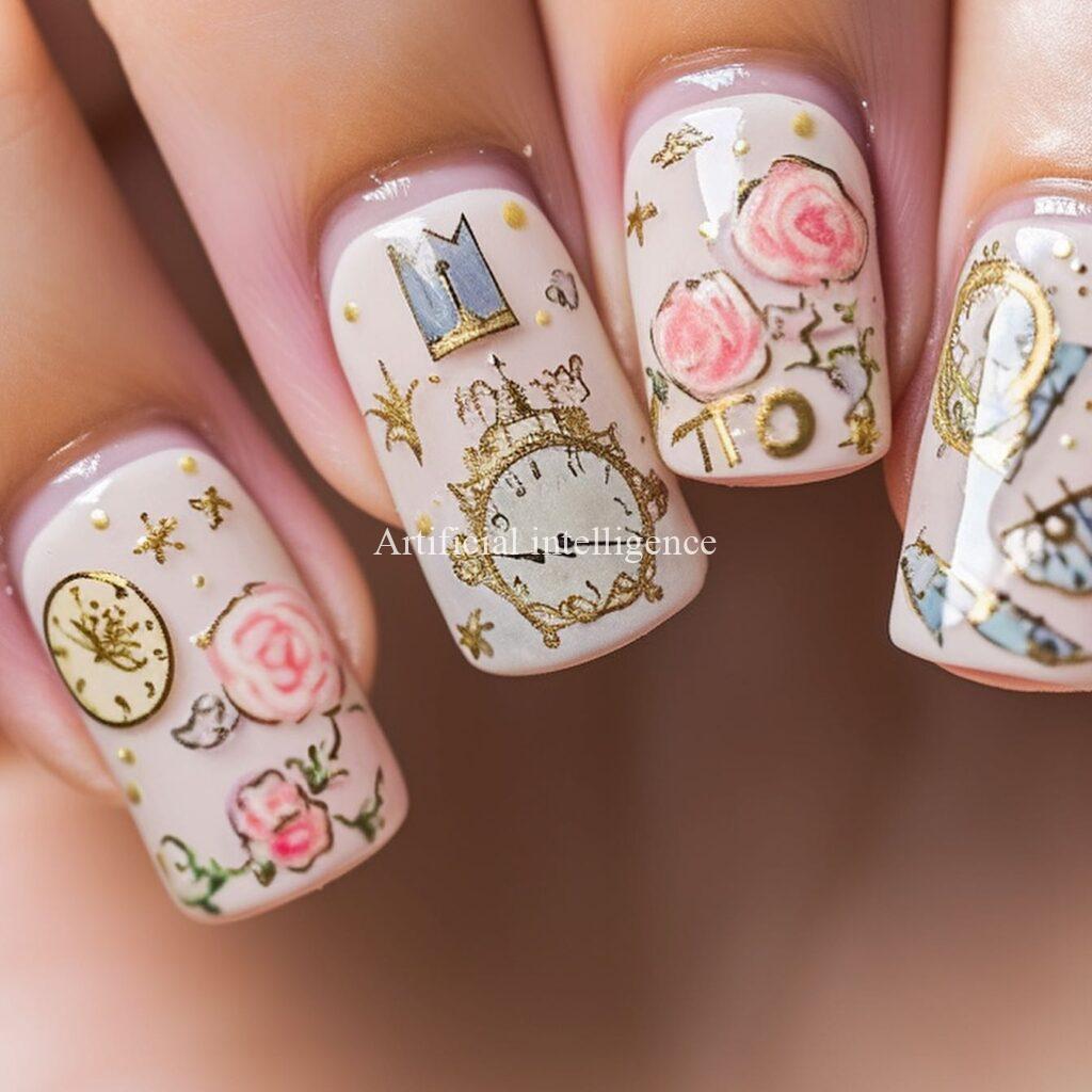 ワンダーランド風ネイルをコンセプトにAIイラストツールで架空の画像を生成しました。
