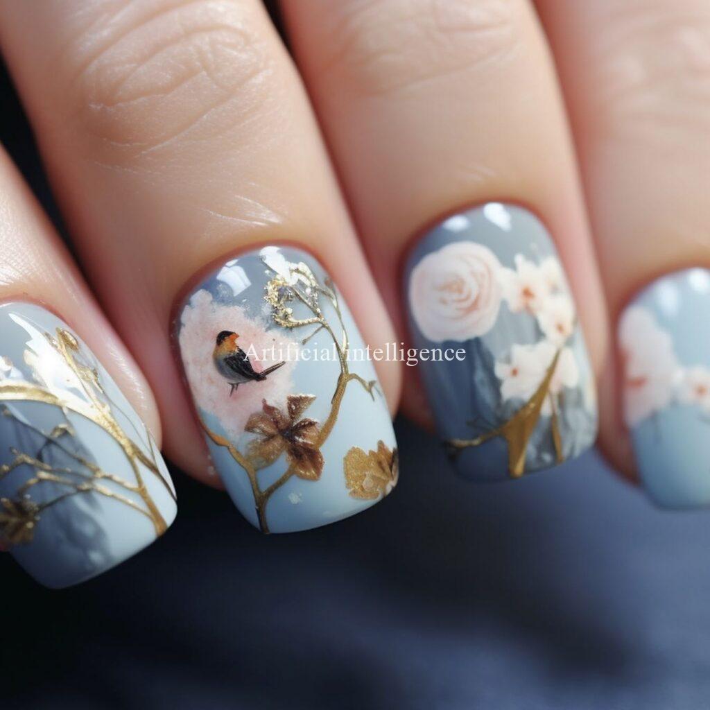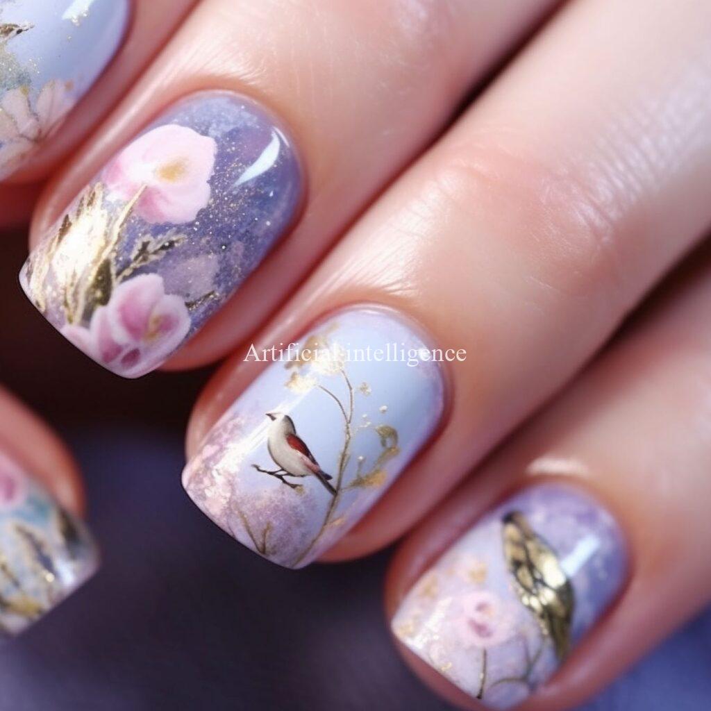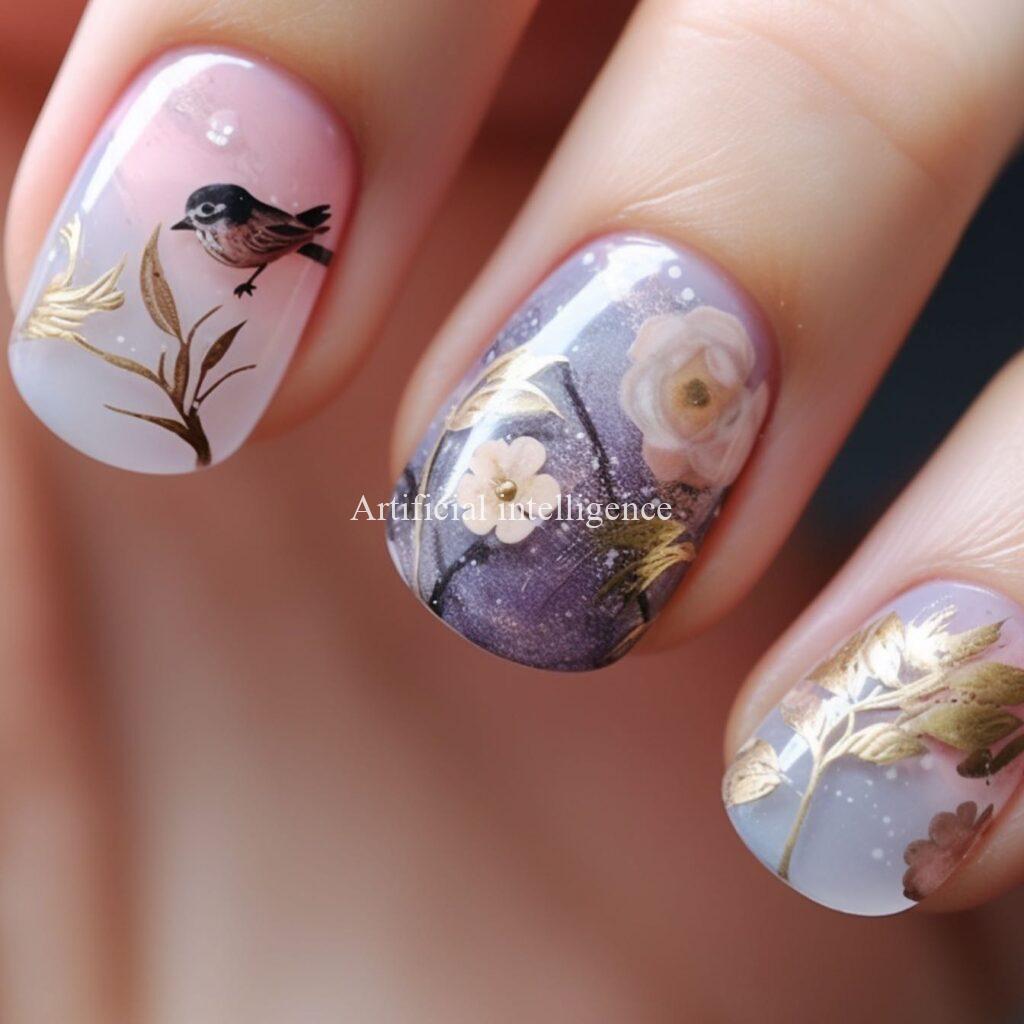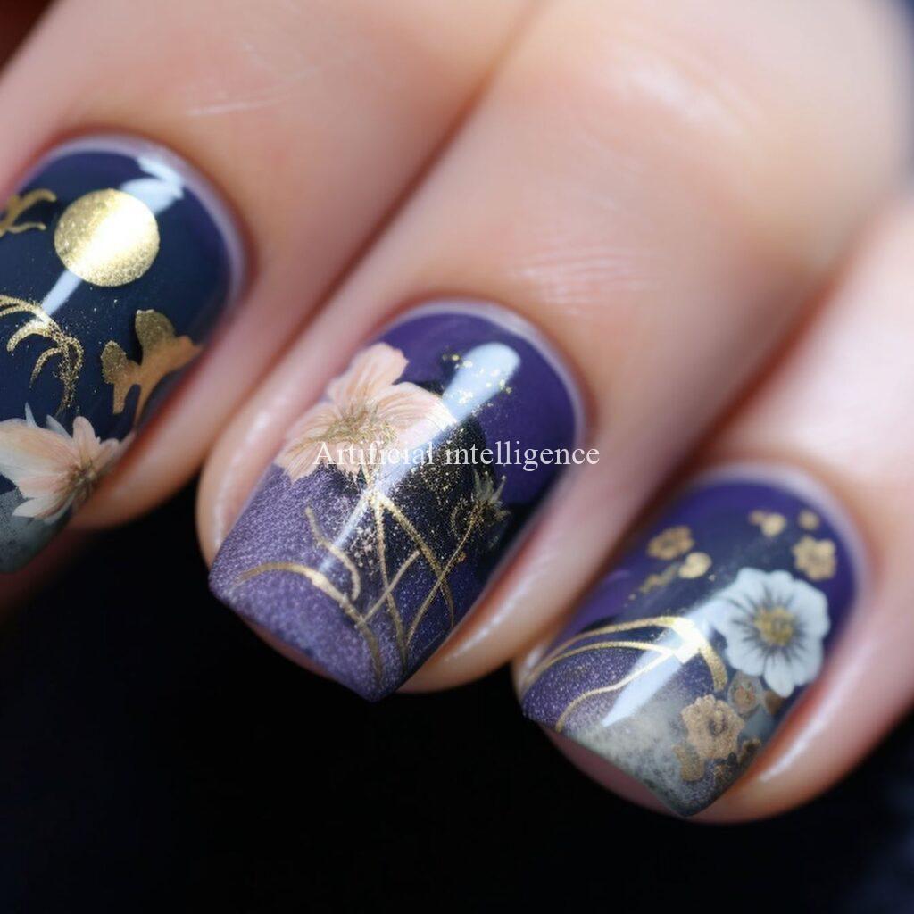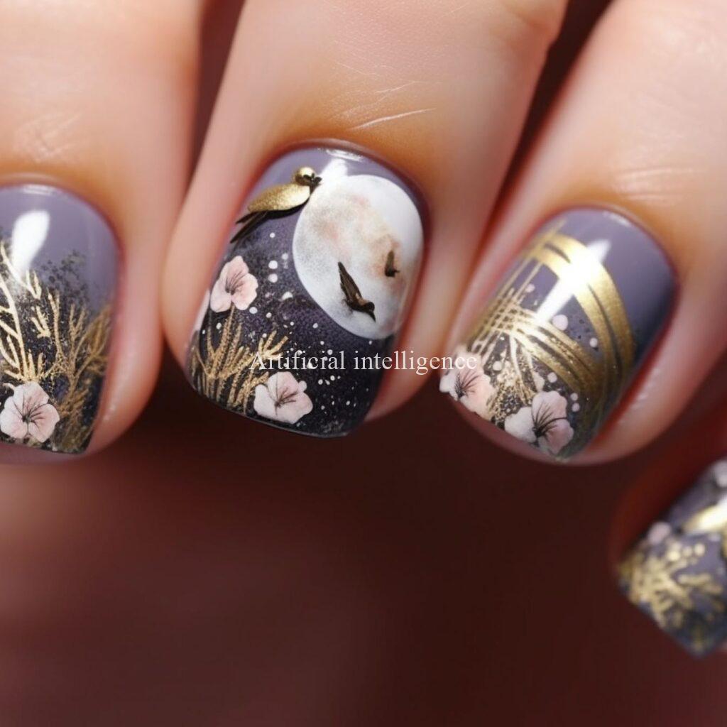 花鳥風月イメージのネイルをコンセプトにAIイラストツールで架空の画像を生成しました。