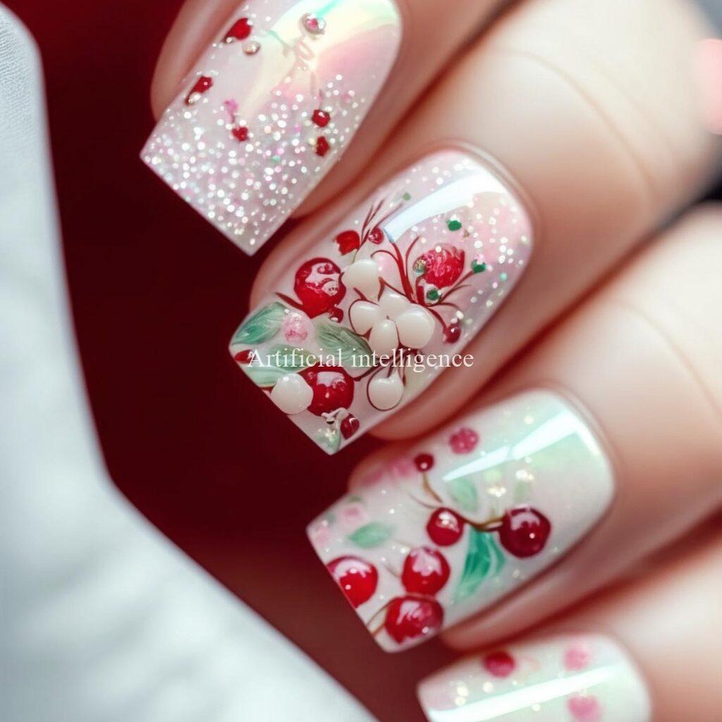 朝昼夜のユスラウメネイルをコンセプトにAIイラストツールで架空の画像を生成しました。