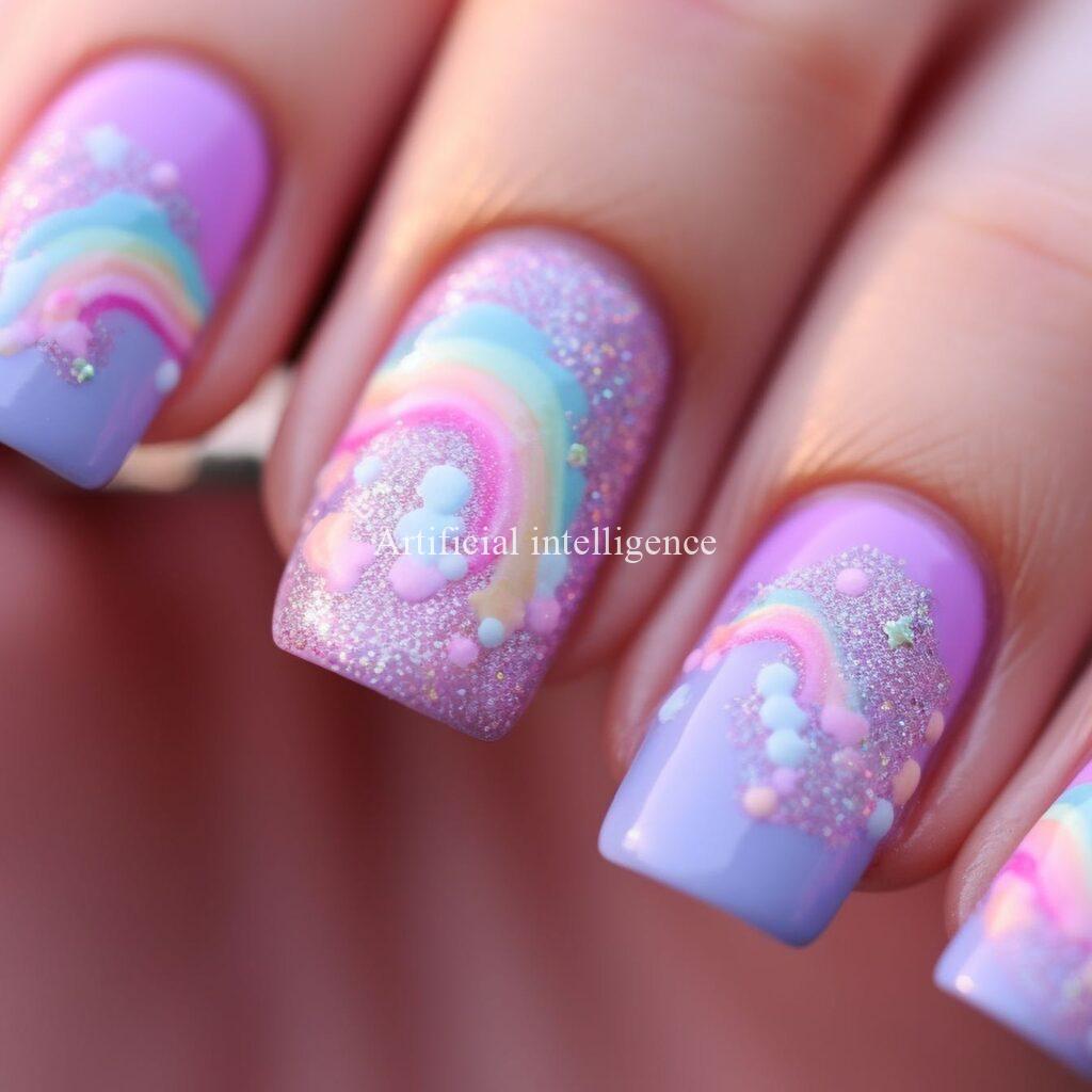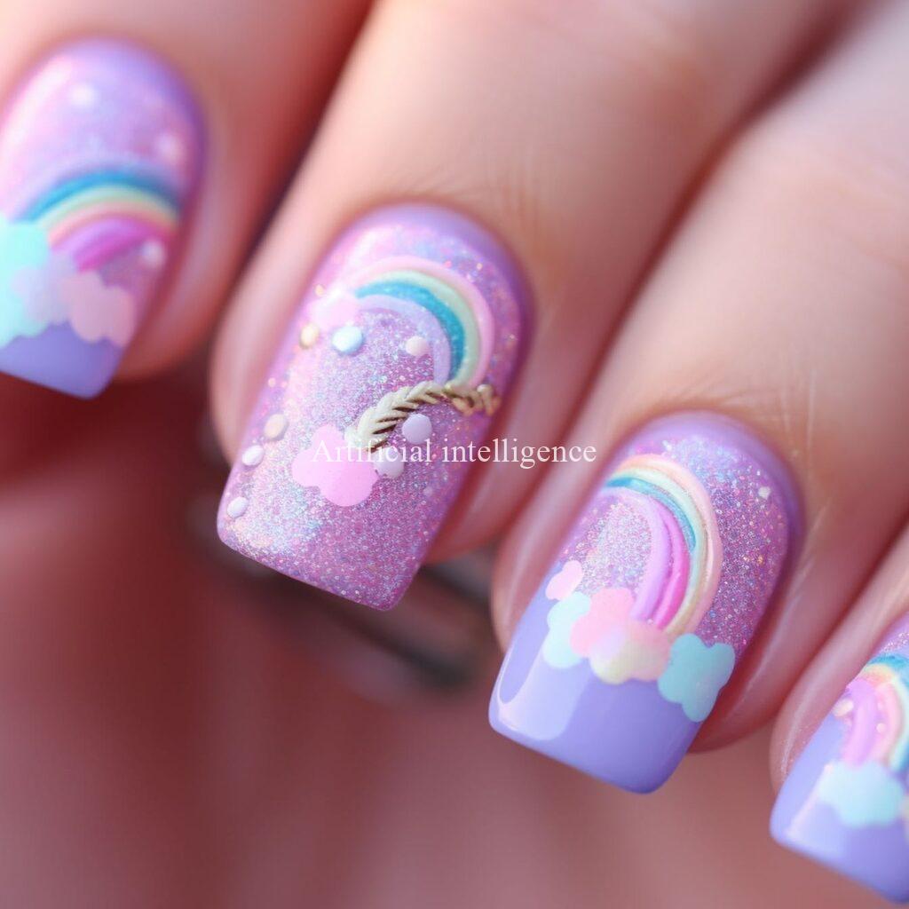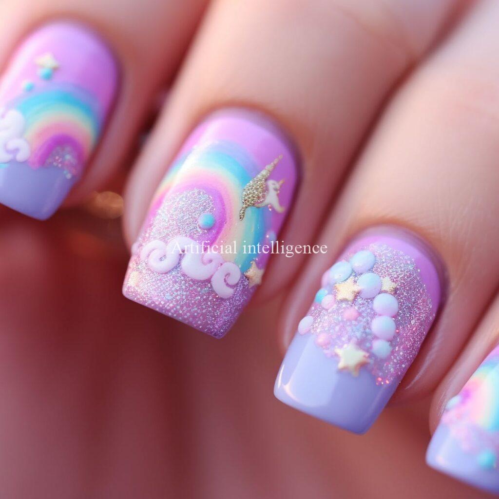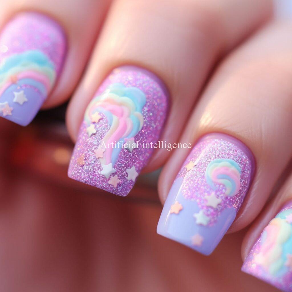 ゆめかわレインボーネイルをコンセプトにAIイラストツールで架空の画像を生成しました。