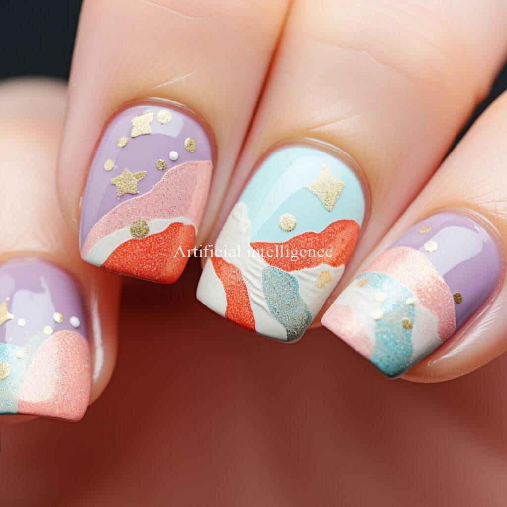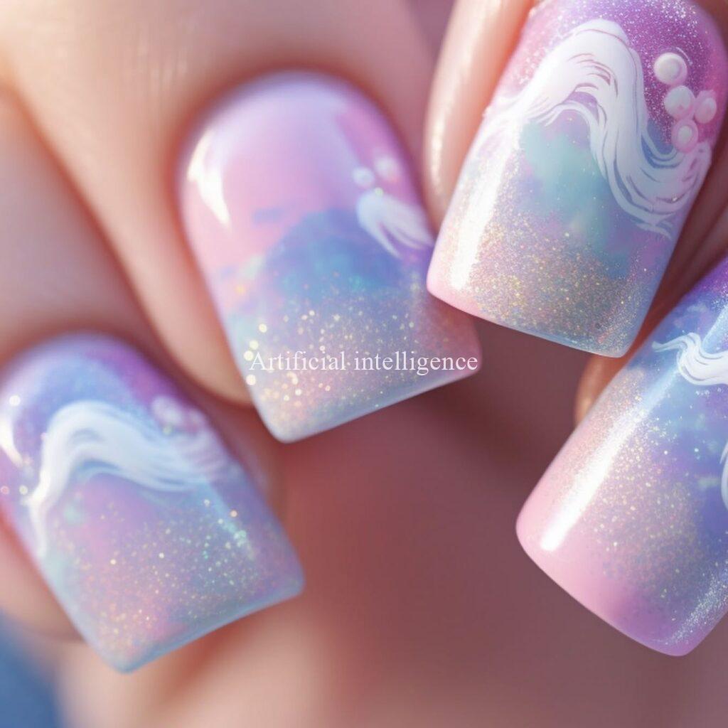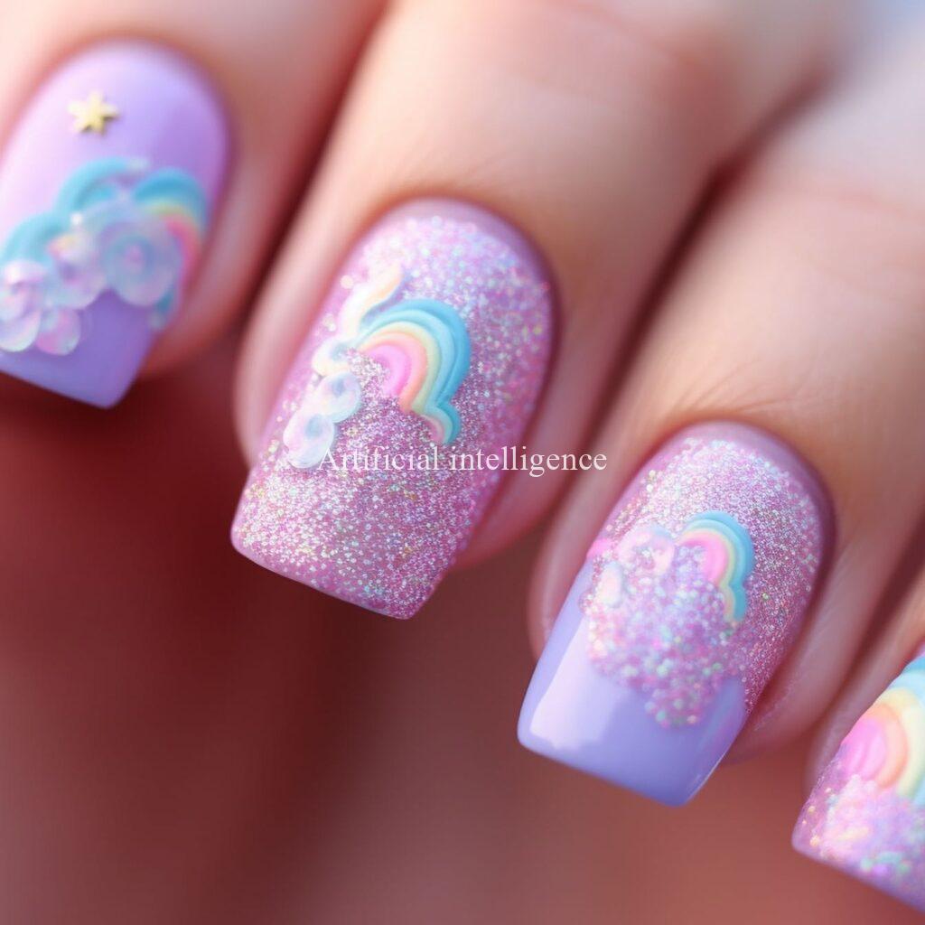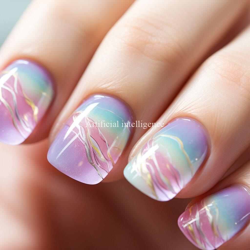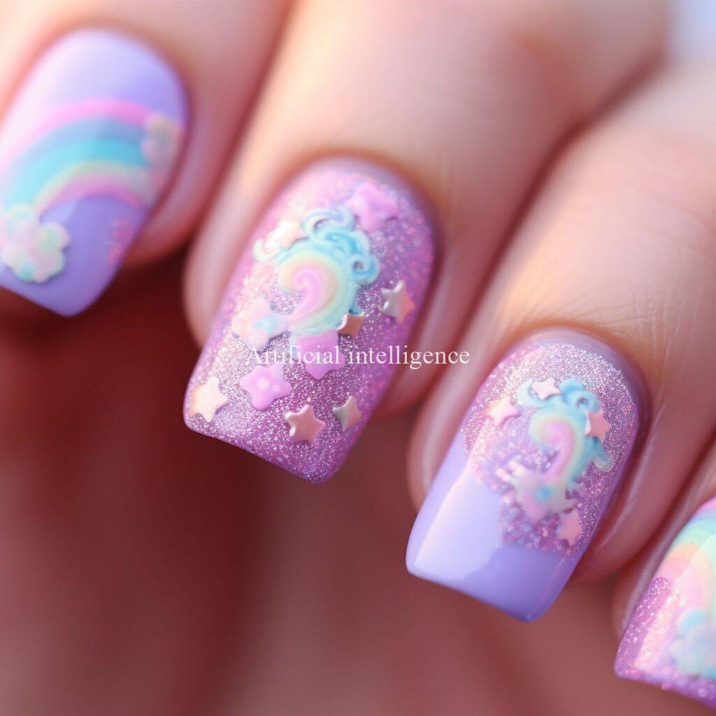ゆめかわレインボーネイルをコンセプトにAIイラストツールで架空の画像を生成しました。