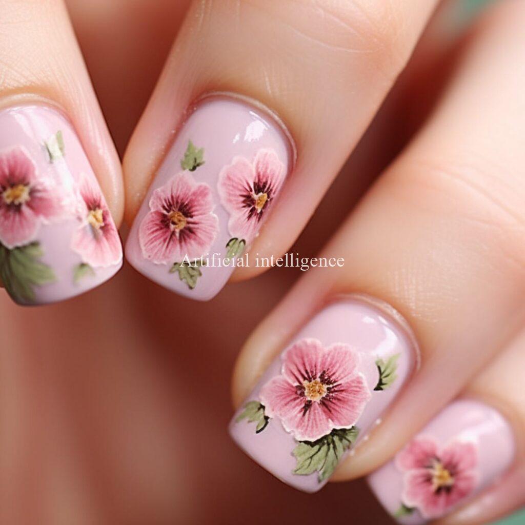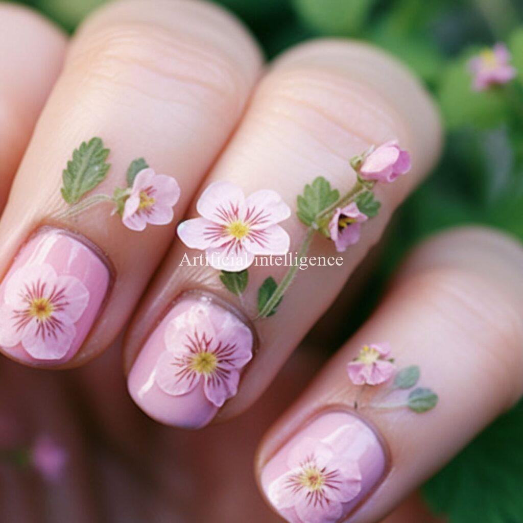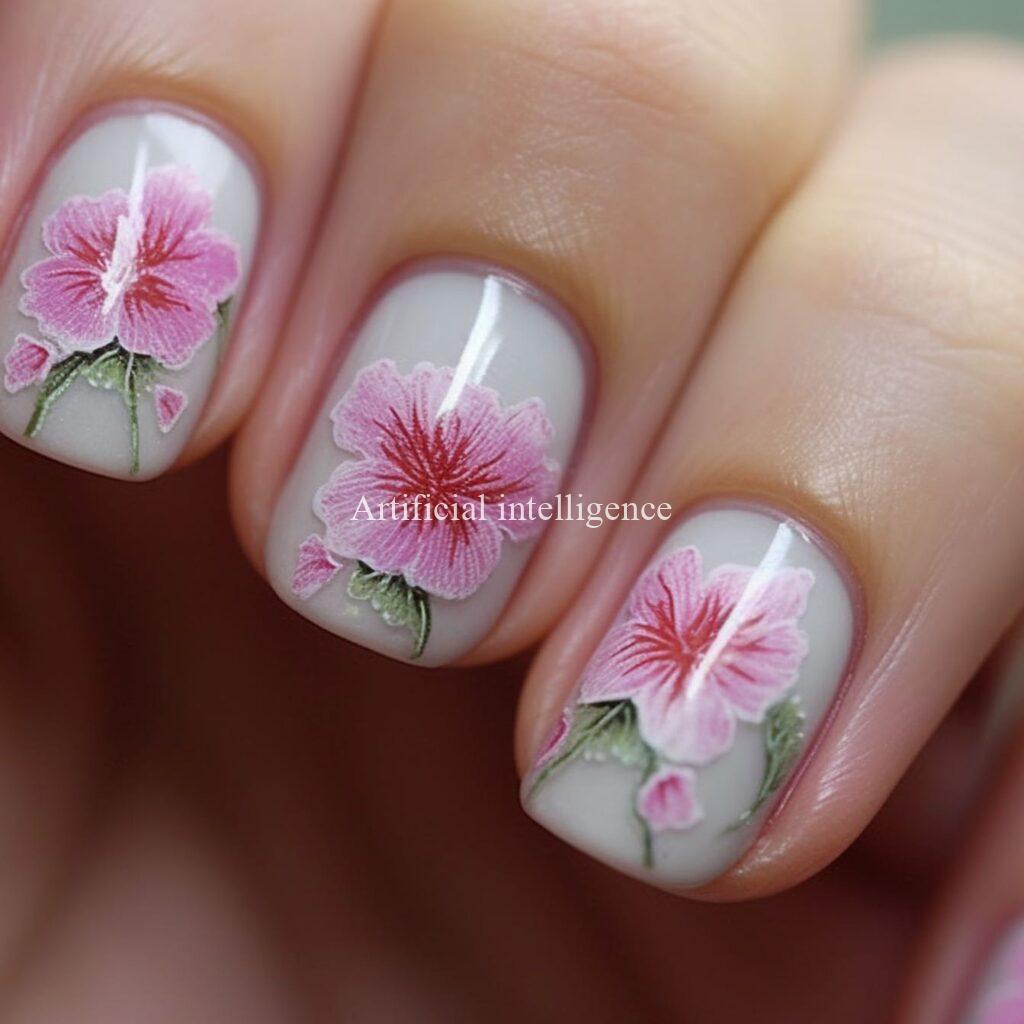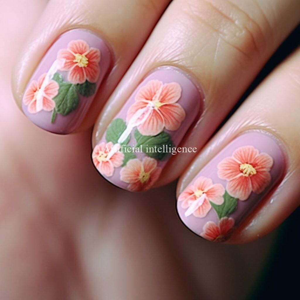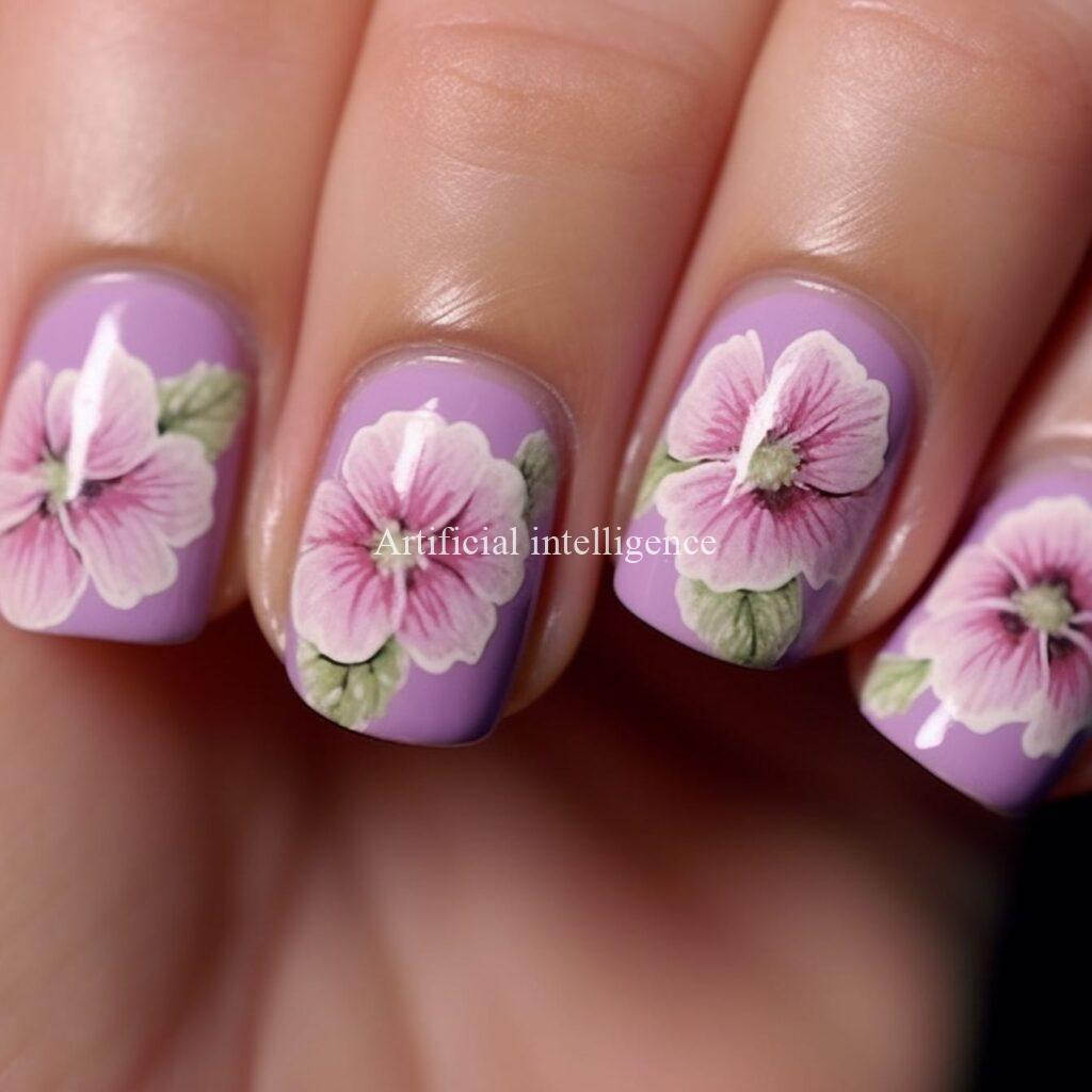 タチアオイ風のフラワーネイルをコンセプトにAIイラストツールで架空の画像を生成しました。