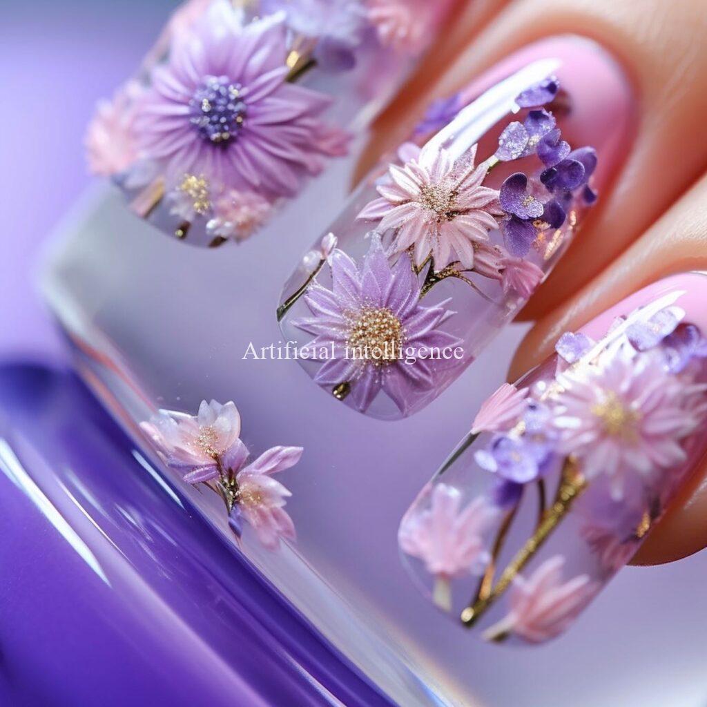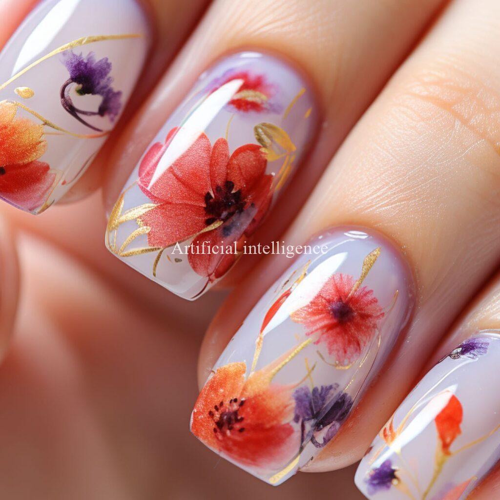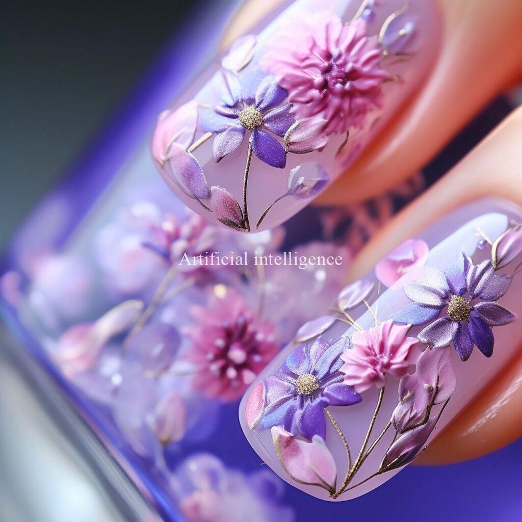 modern japanese flower nails by AI