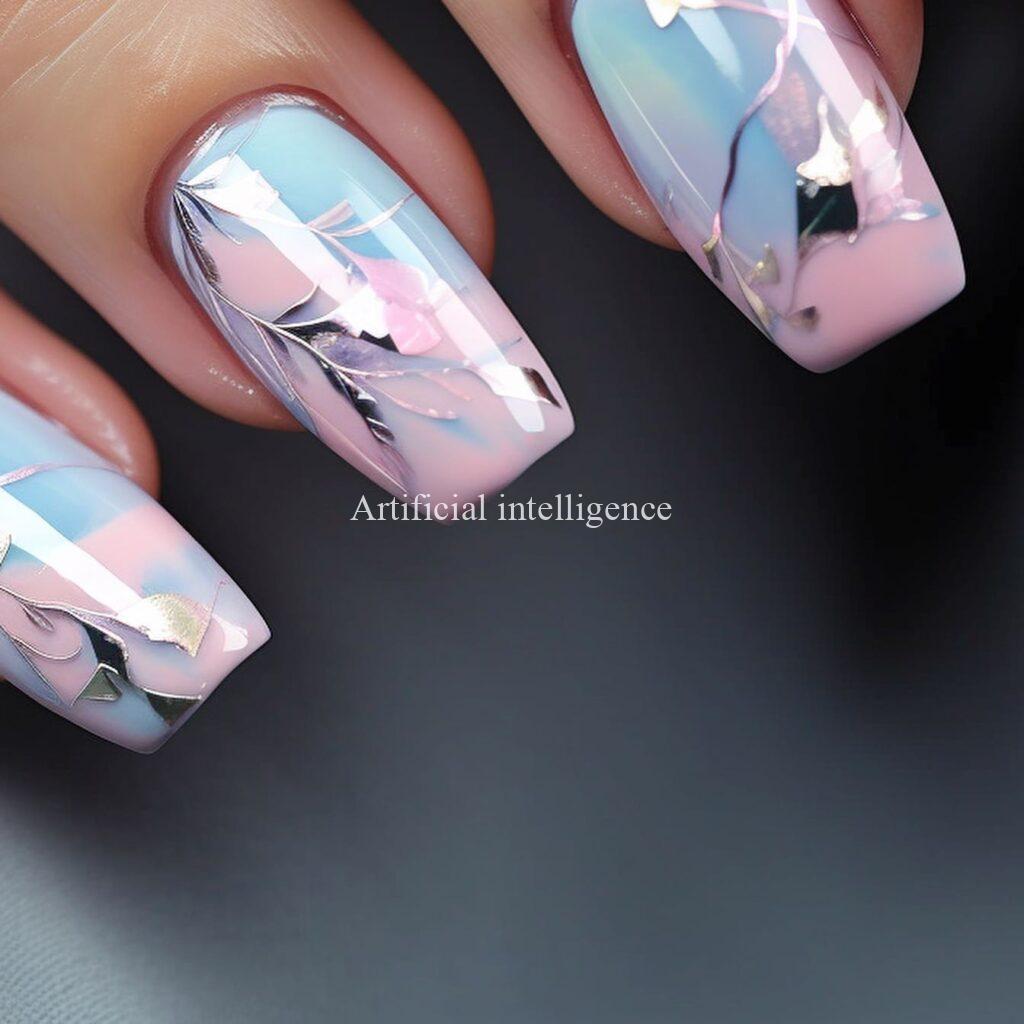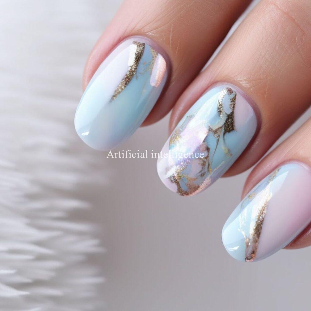 パステルカラーの大理石風ネイルをコンセプトにAIイラストツールで架空の画像を生成しました。