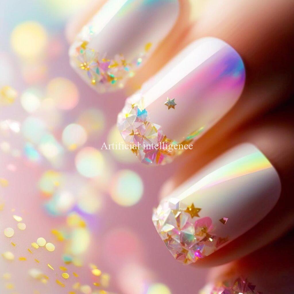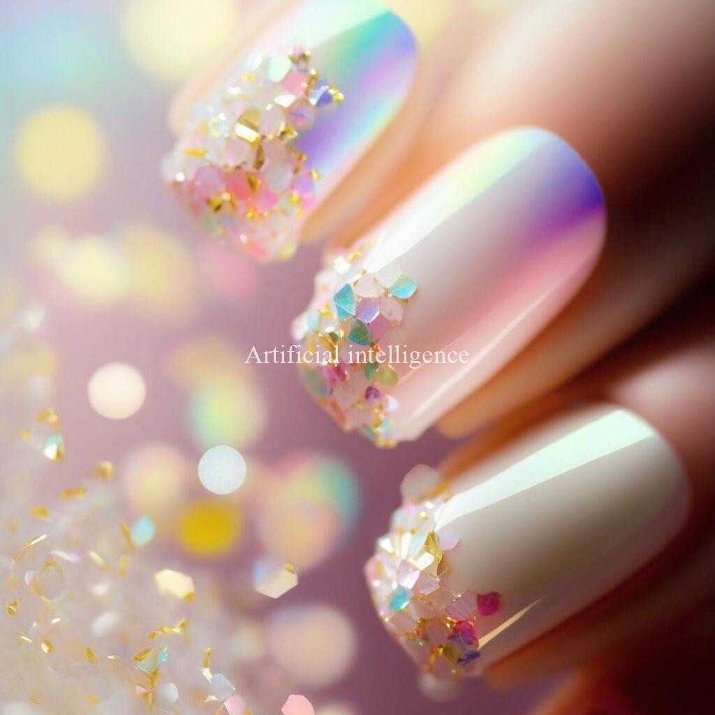 ゆめかわさざれ石ジェムネイルをコンセプトにAIイラストツールで架空の画像を生成しました。
