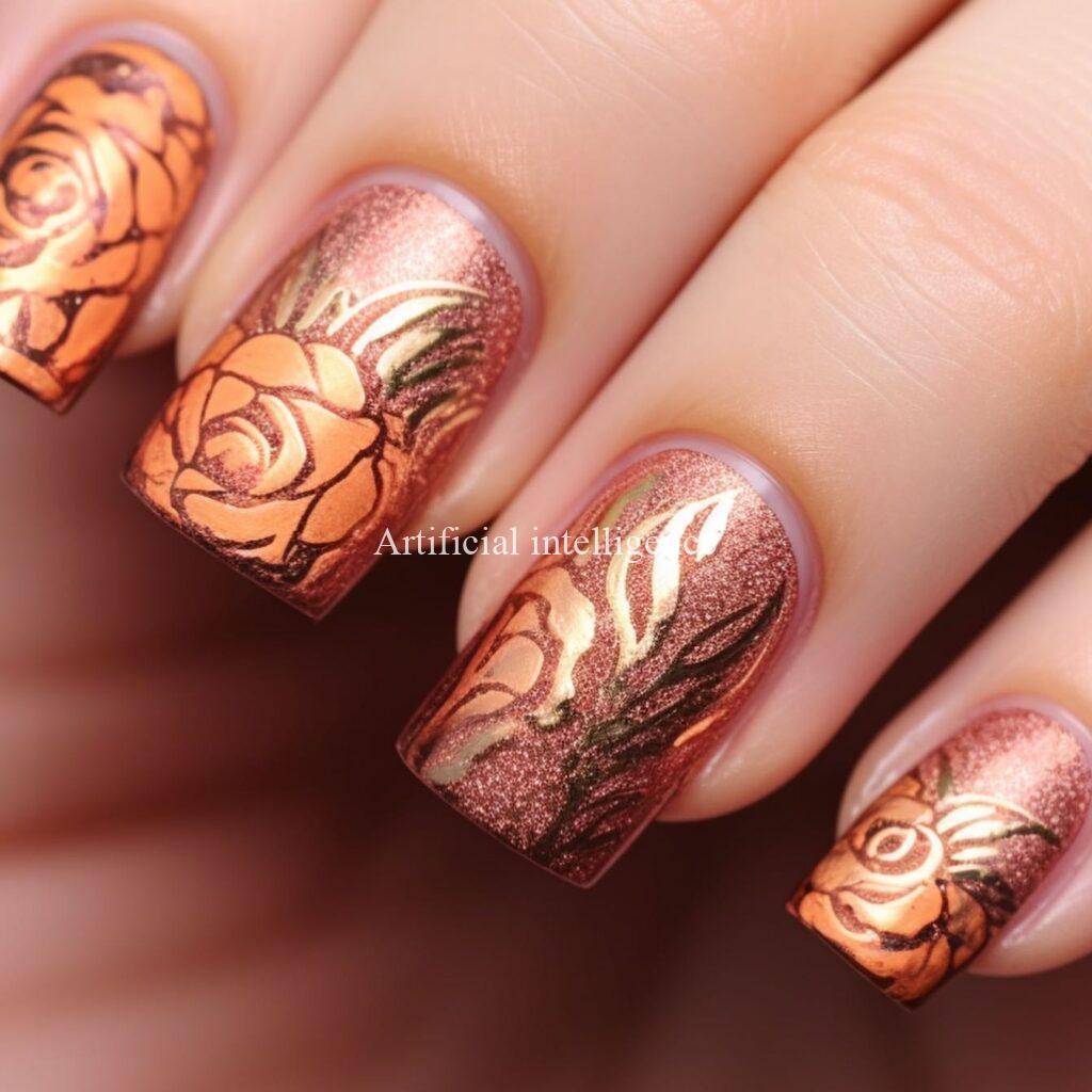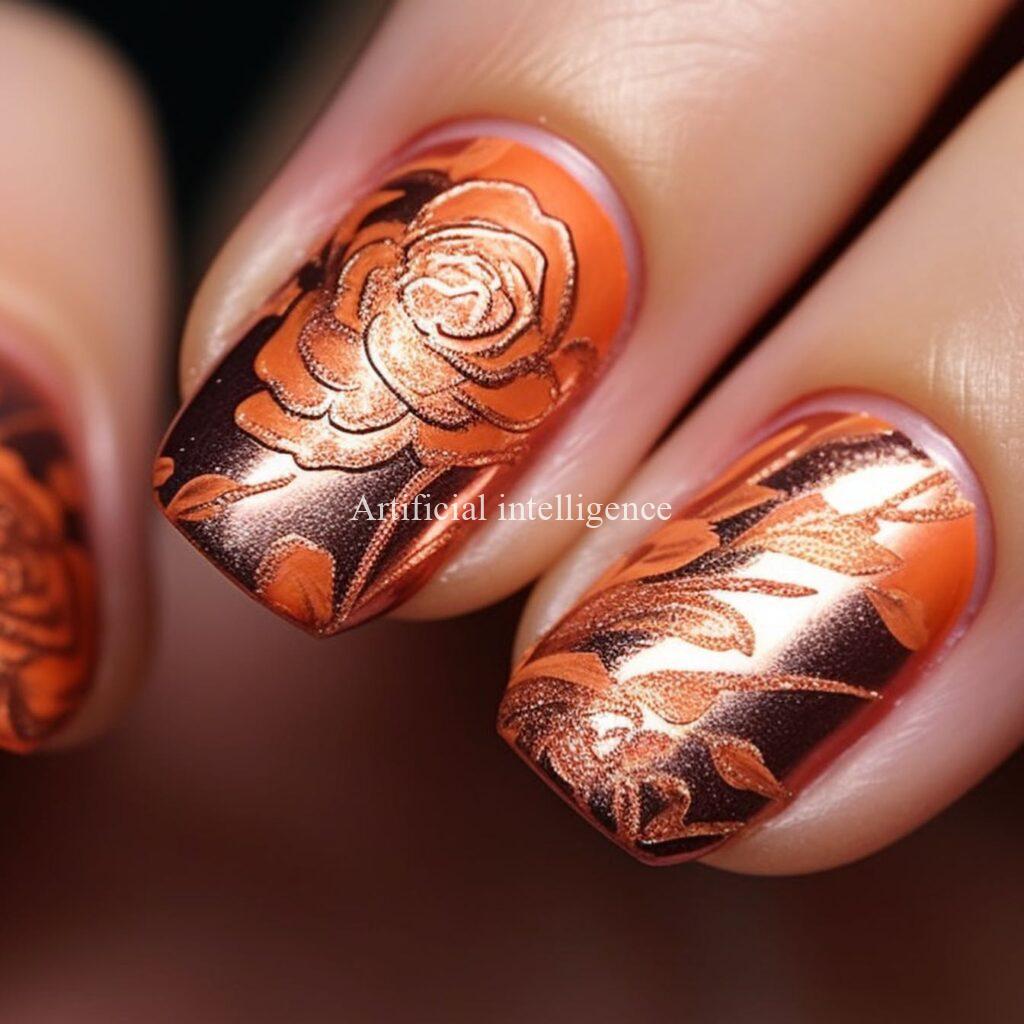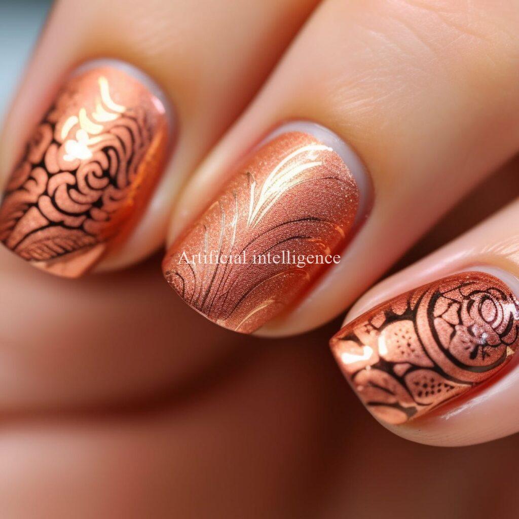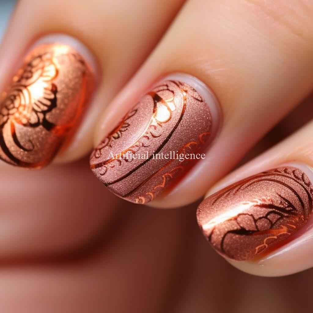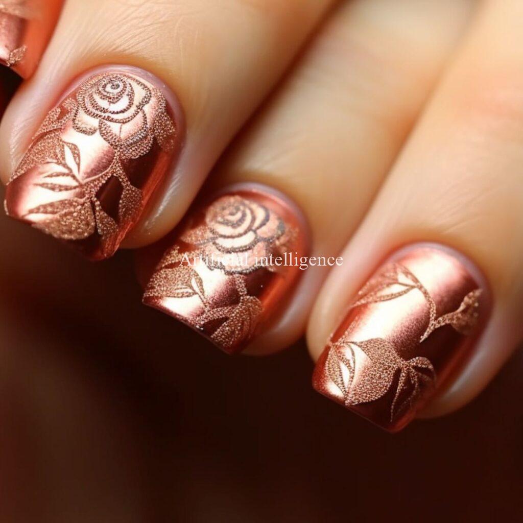 ピンクの銅板レリーフ風ネイルをコンセプトにAIイラストツールで架空の画像を生成しました。