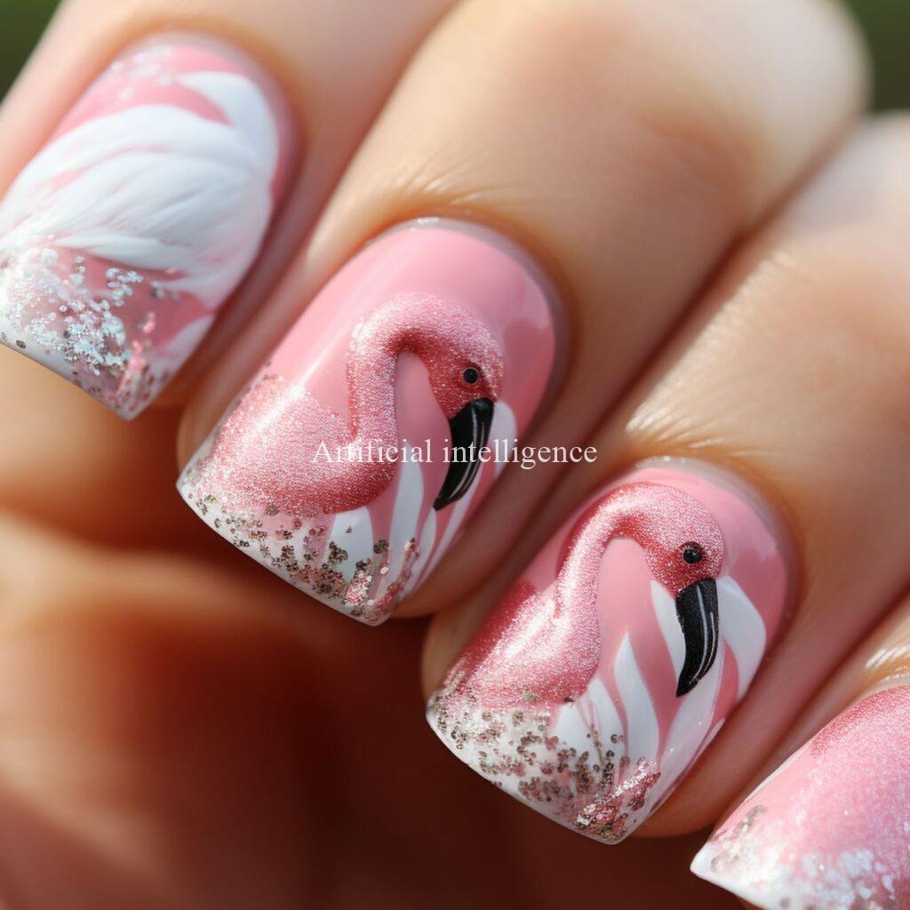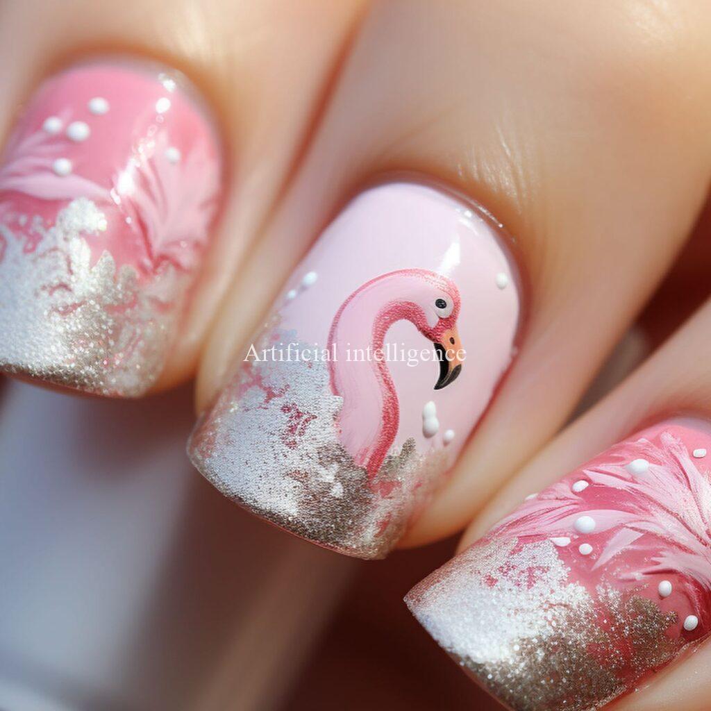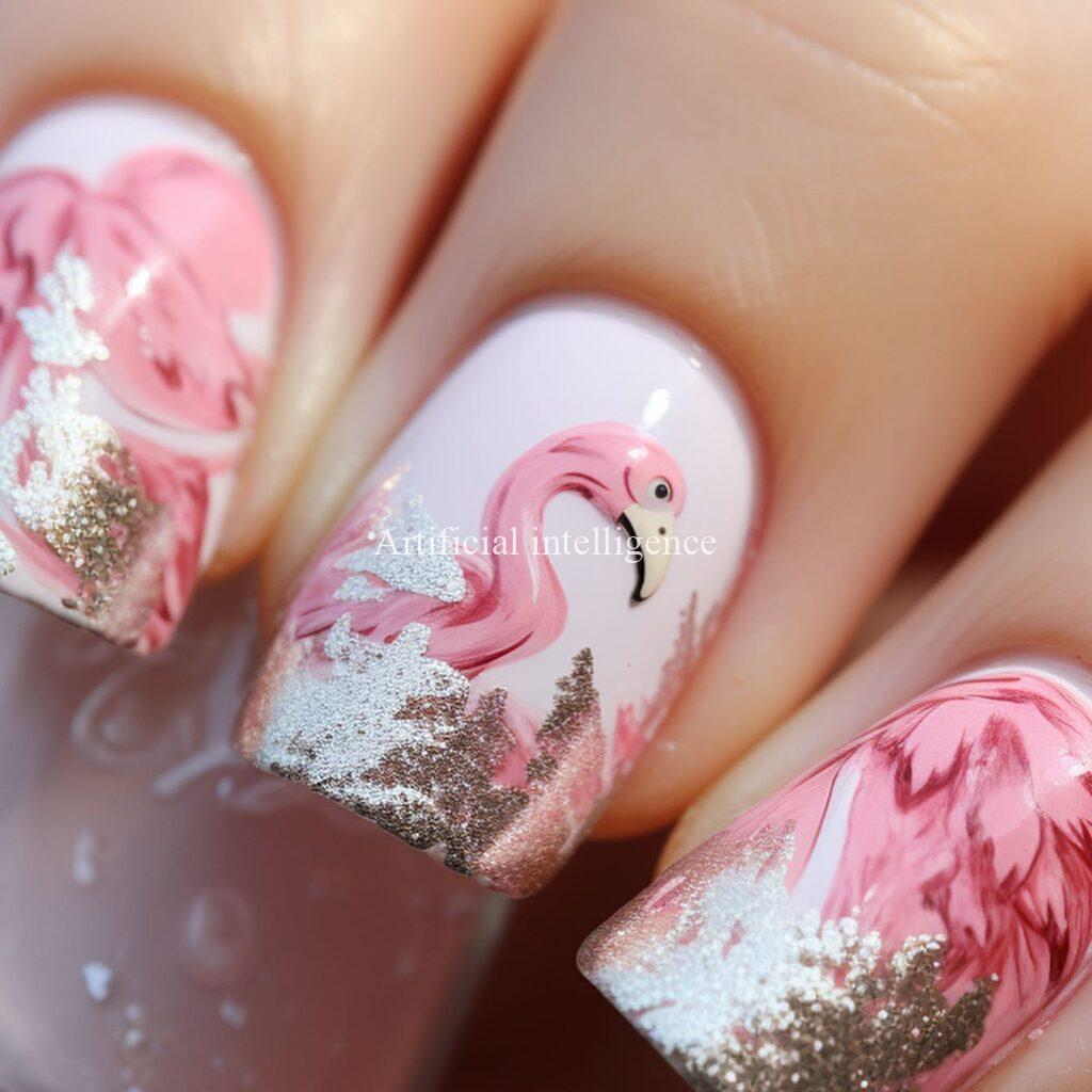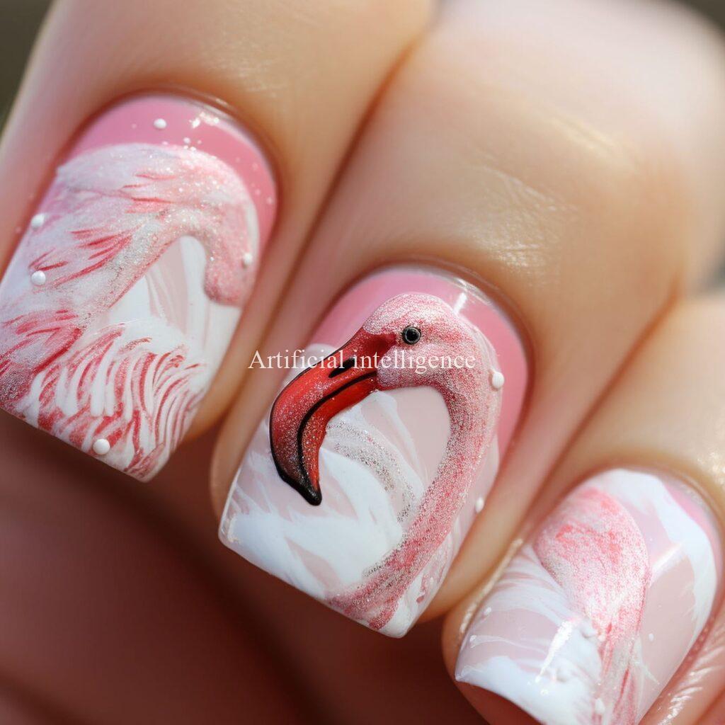 フラミンゴ・ピンクの鳥さんネイル #1129