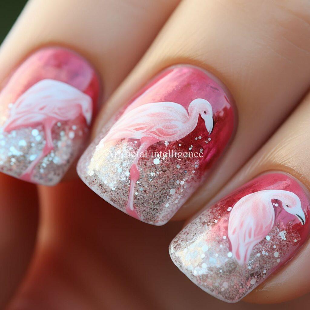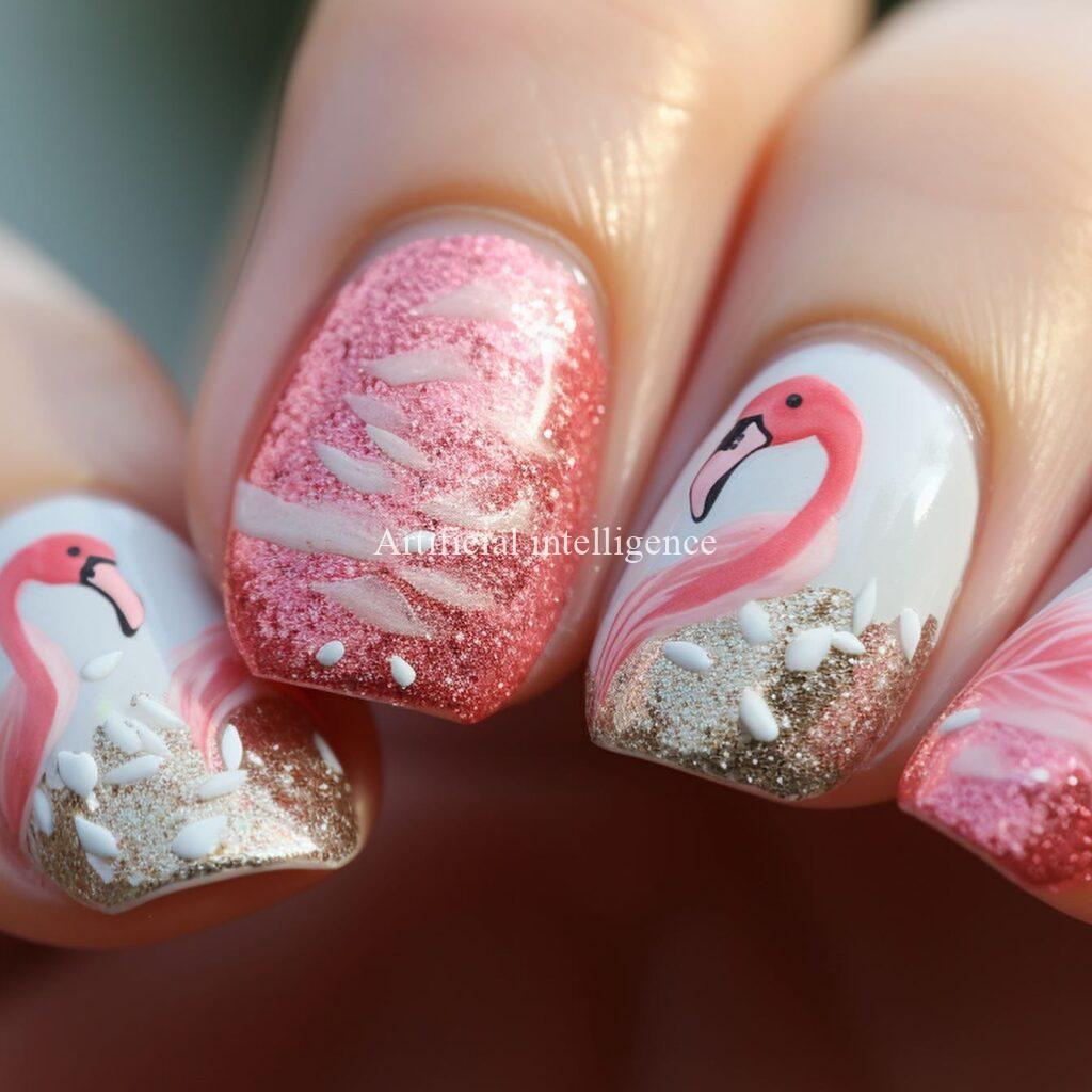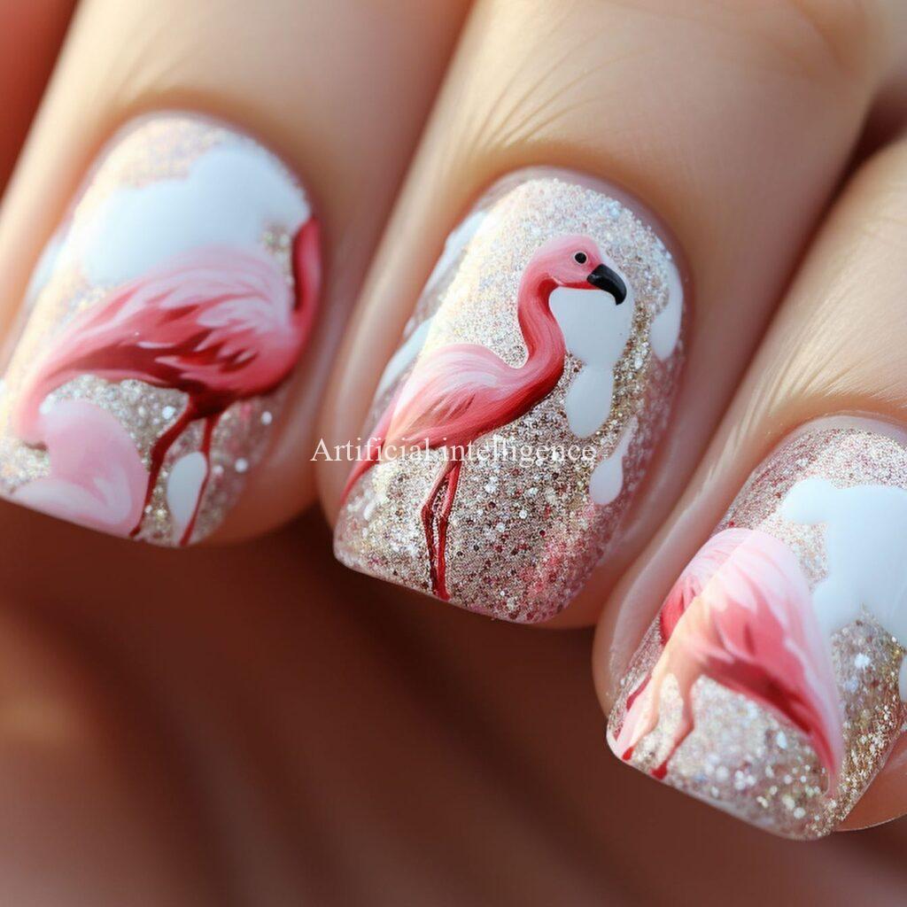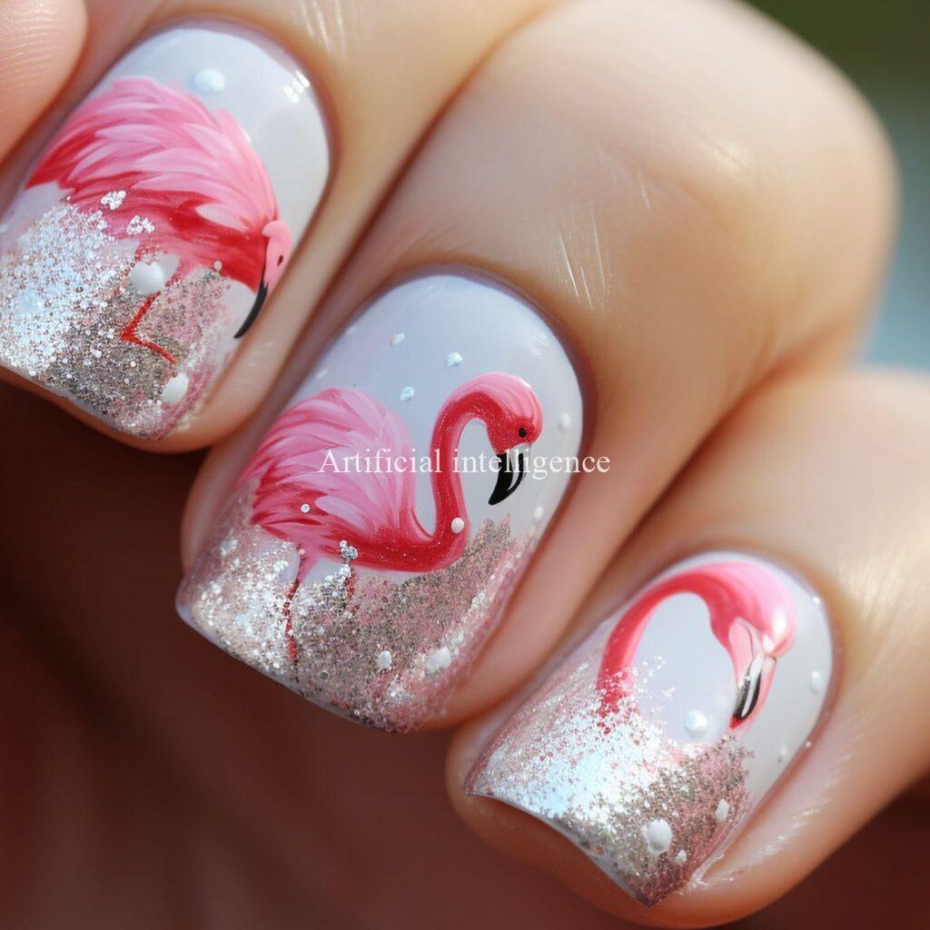 フラミンゴ・ピンクの鳥さんネイル #1129