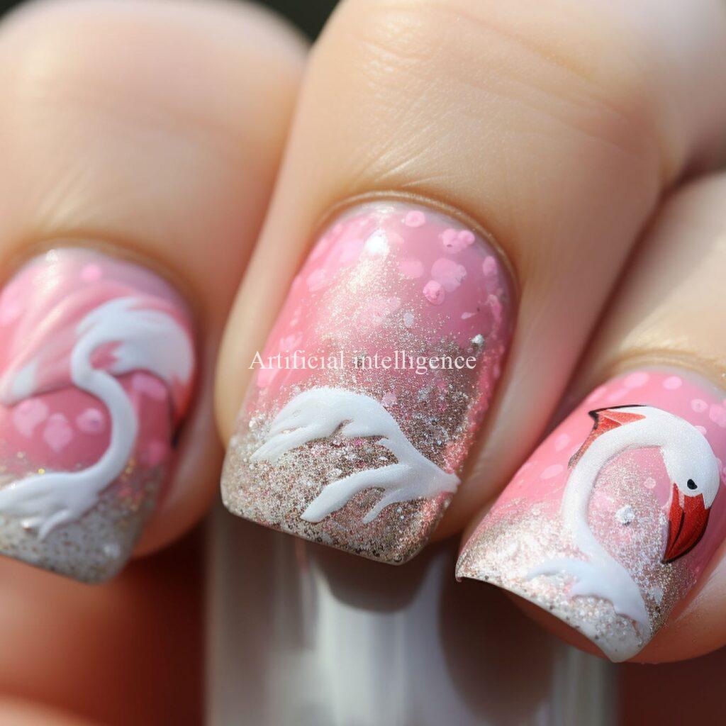 ピンクの鳥さんネイルをコンセプトにAIイラストツールで架空の画像を生成しました。