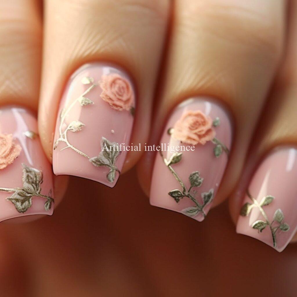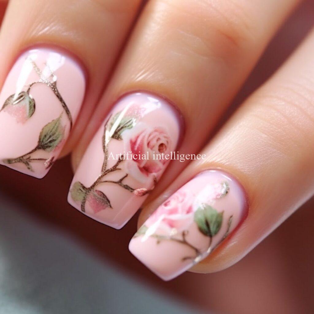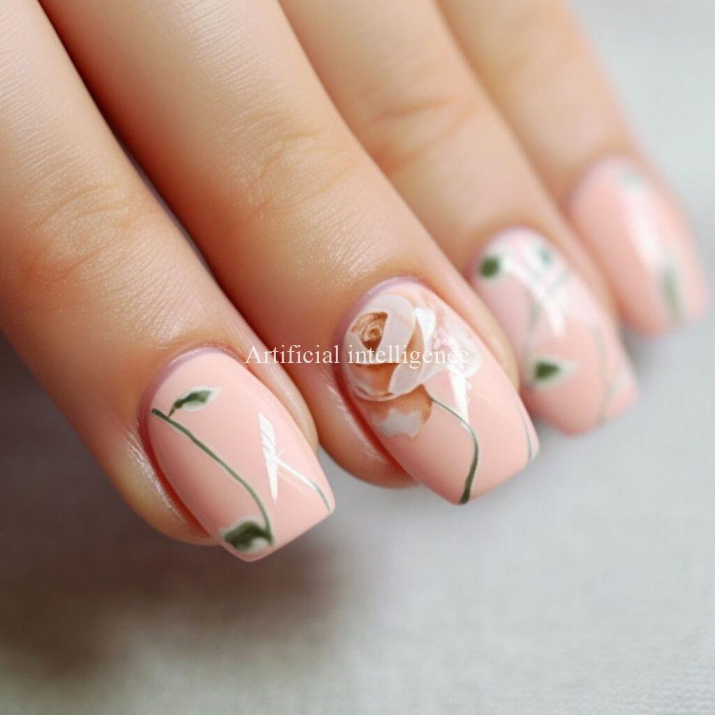 ばらの花と枝のネイルをコンセプトにAIイラストツールで架空の画像を生成しました。