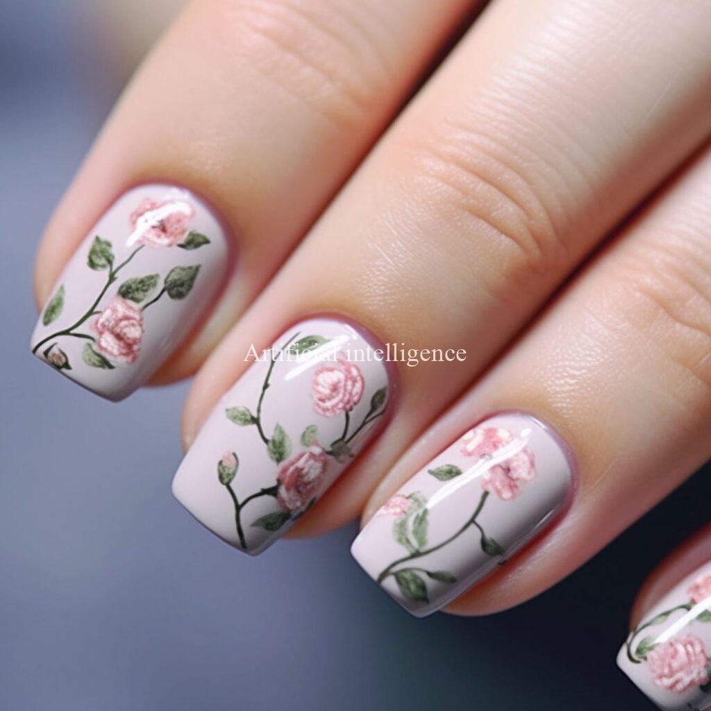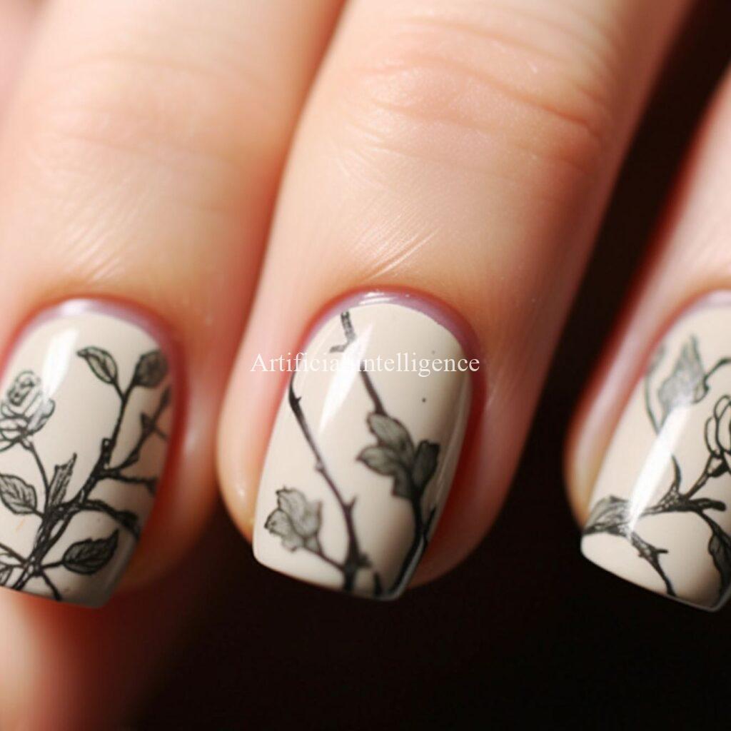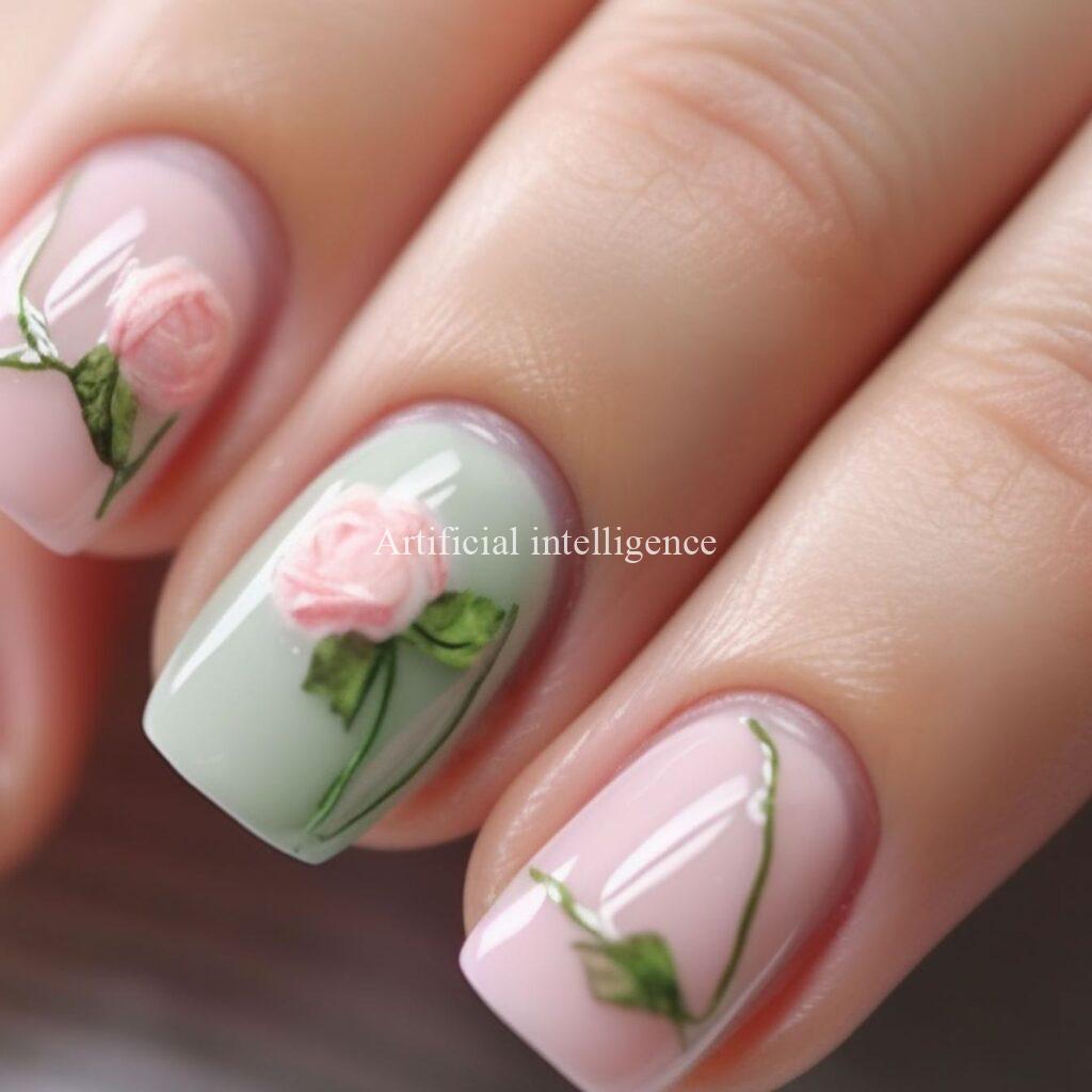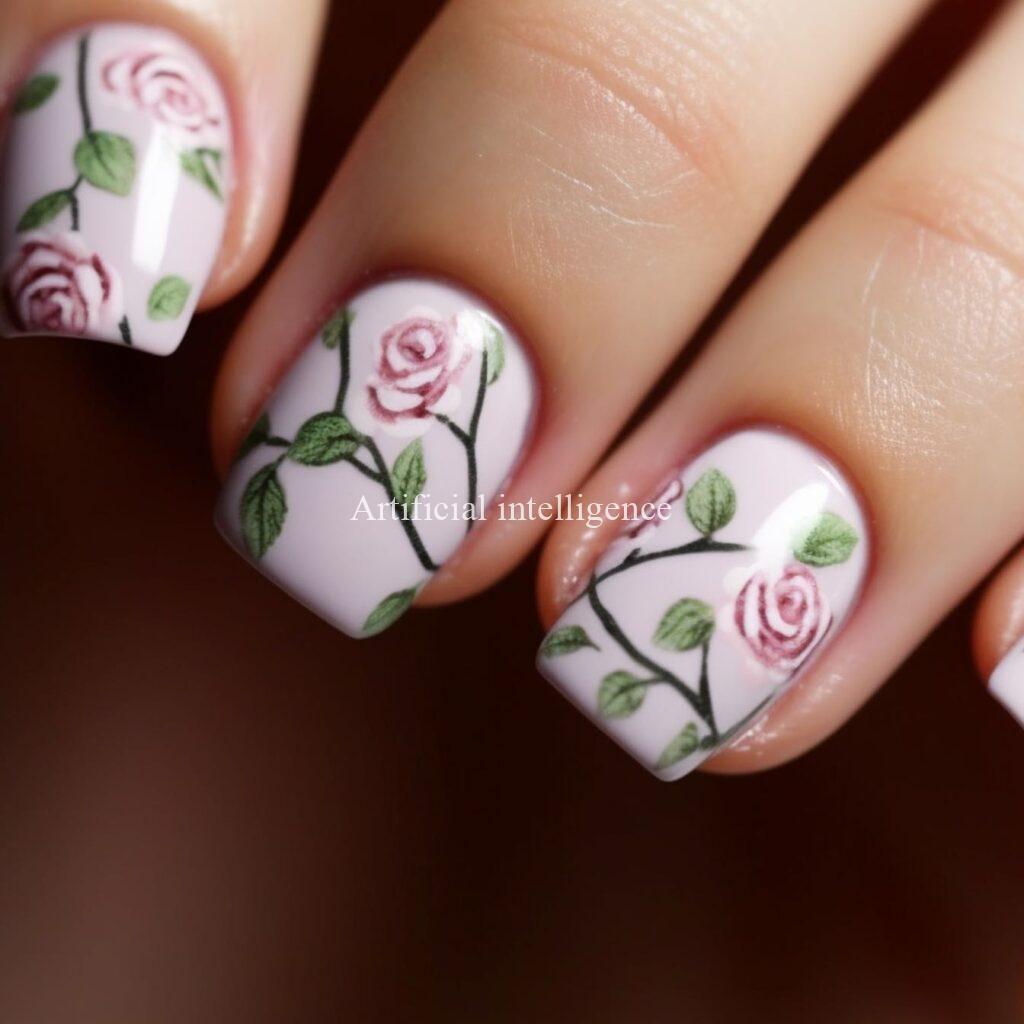 ばらの花と枝のネイルをコンセプトにAIイラストツールで架空の画像を生成しました。