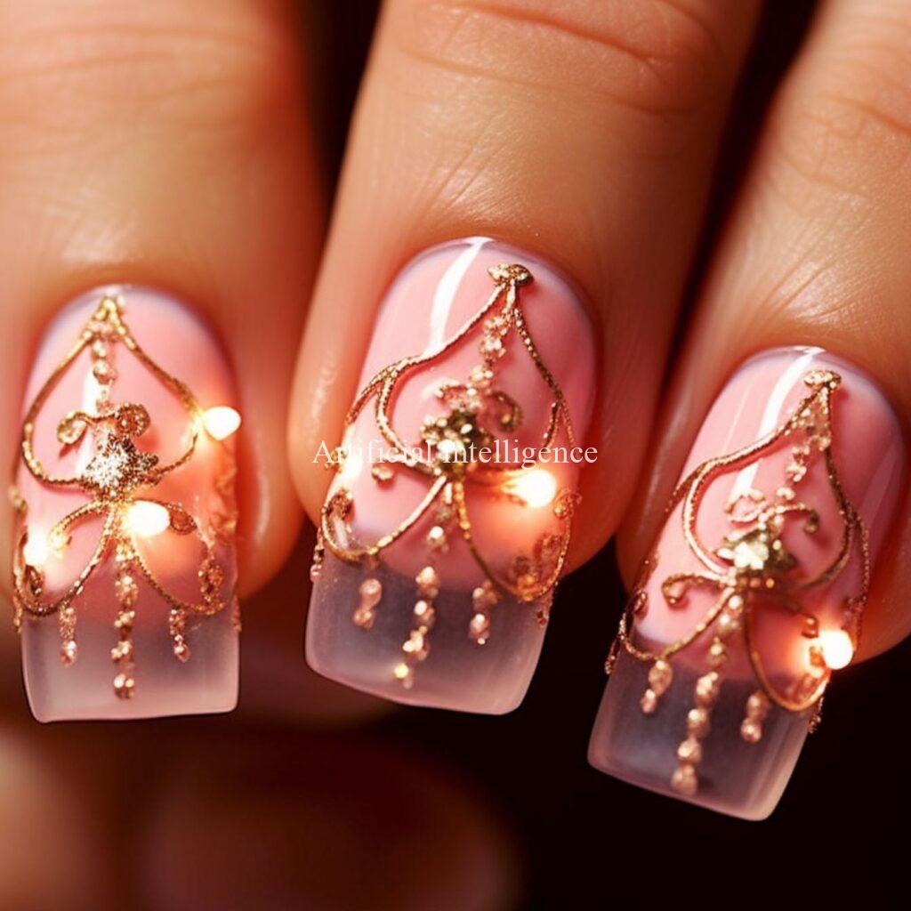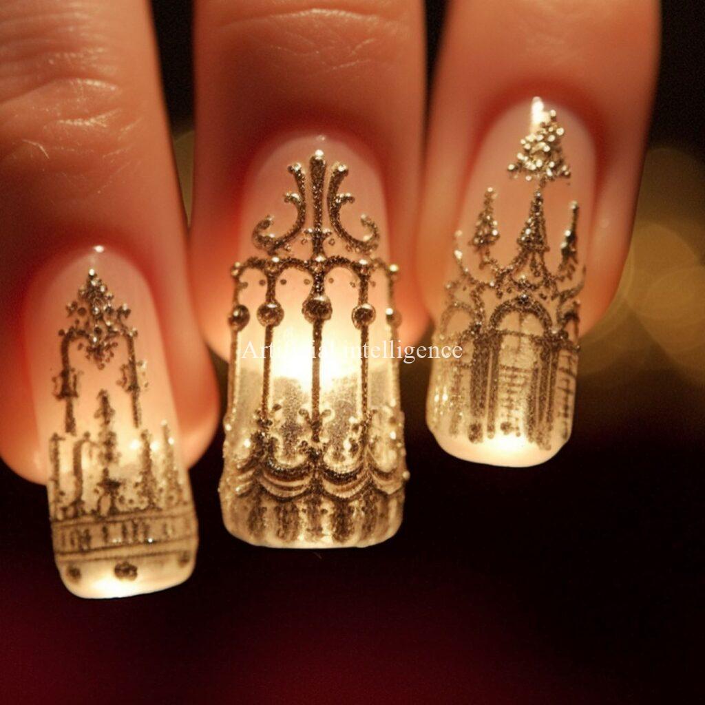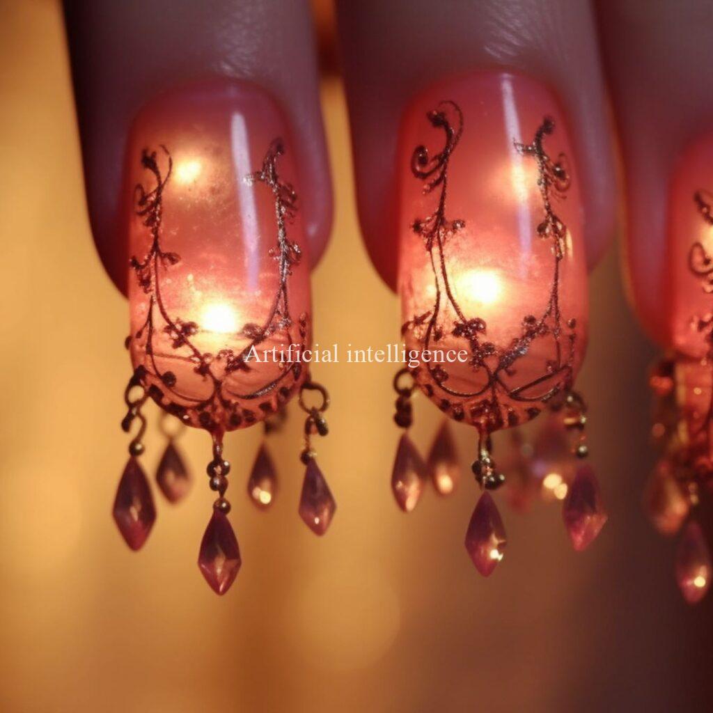 shining chandelier nails by AI