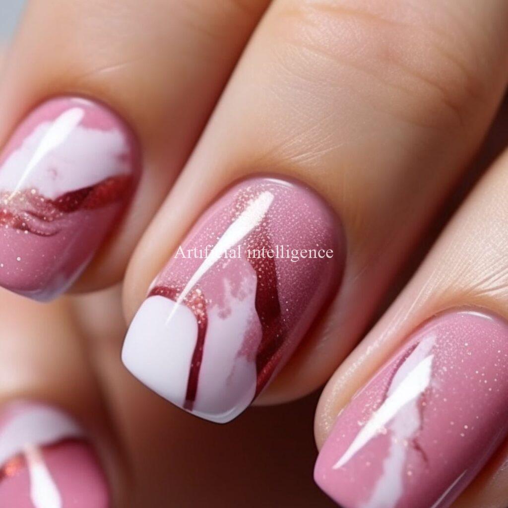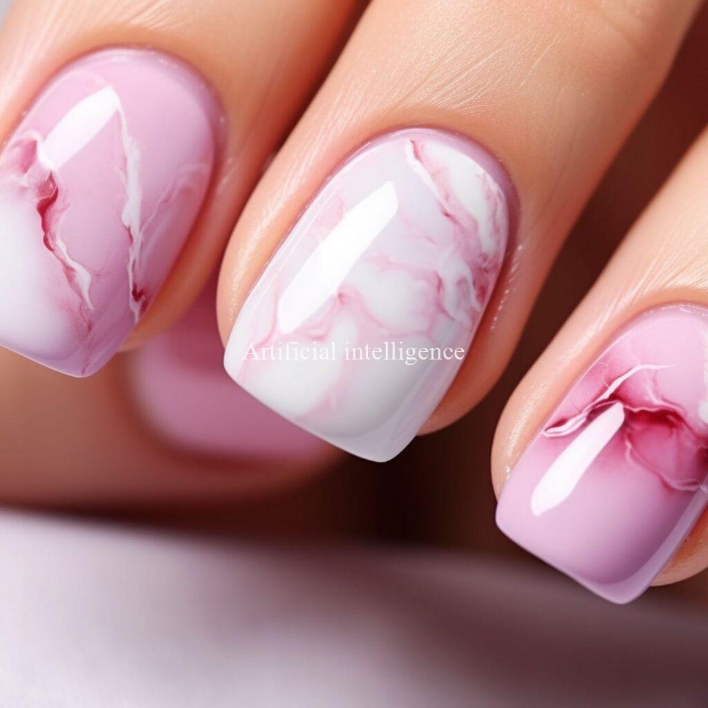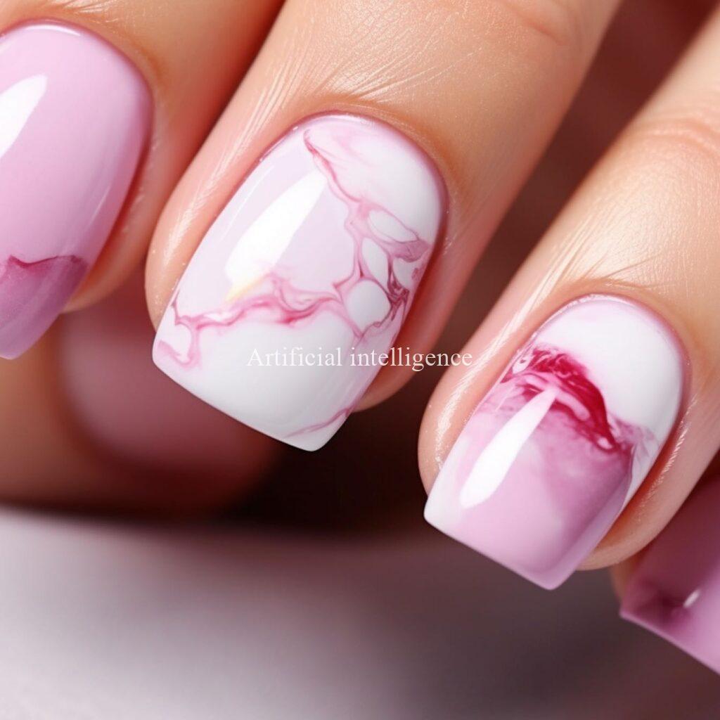 いちご牛乳のマーブルネイルをコンセプトにAIイラストツールで架空の画像を生成しました。