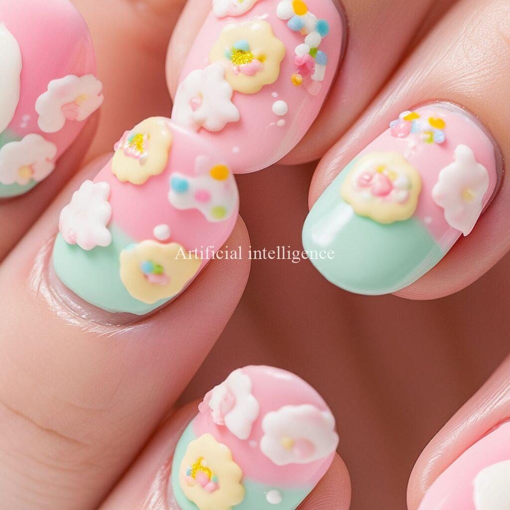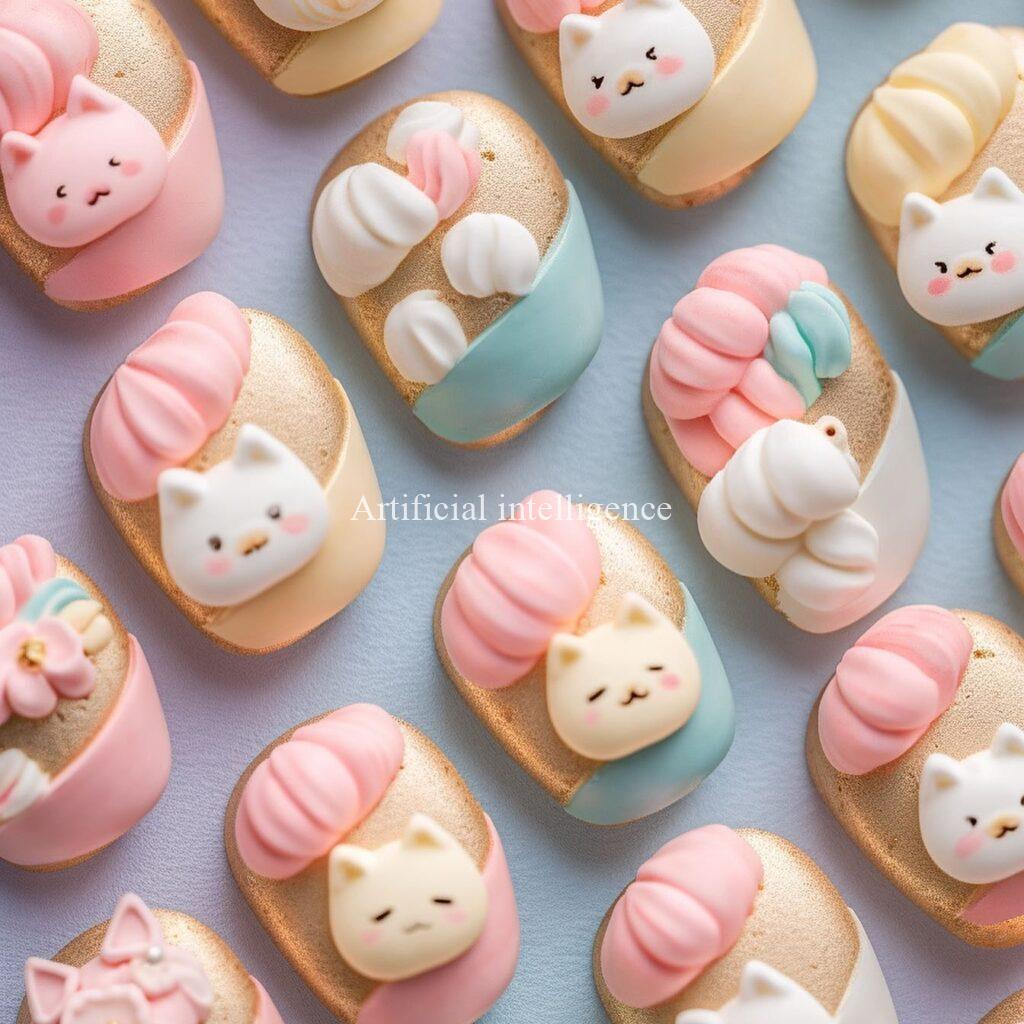砂糖菓子・アイシングクッキー風ネイルをコンセプトにAIイラストツールで架空の画像を生成しました。