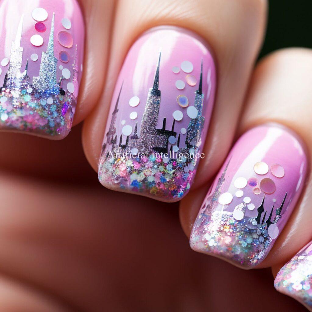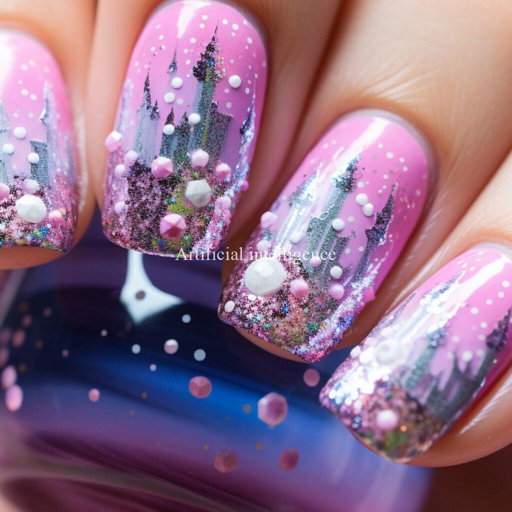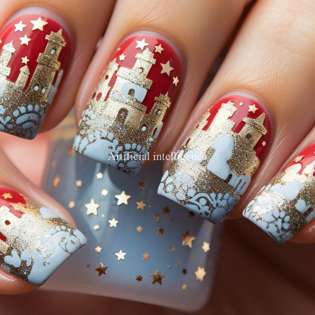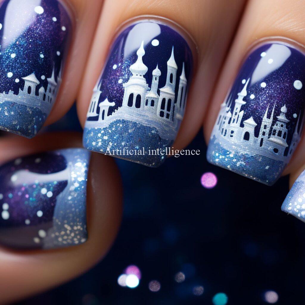 塔・お城イメージのネイルをコンセプトにAIイラストツールで架空の画像を生成しました。