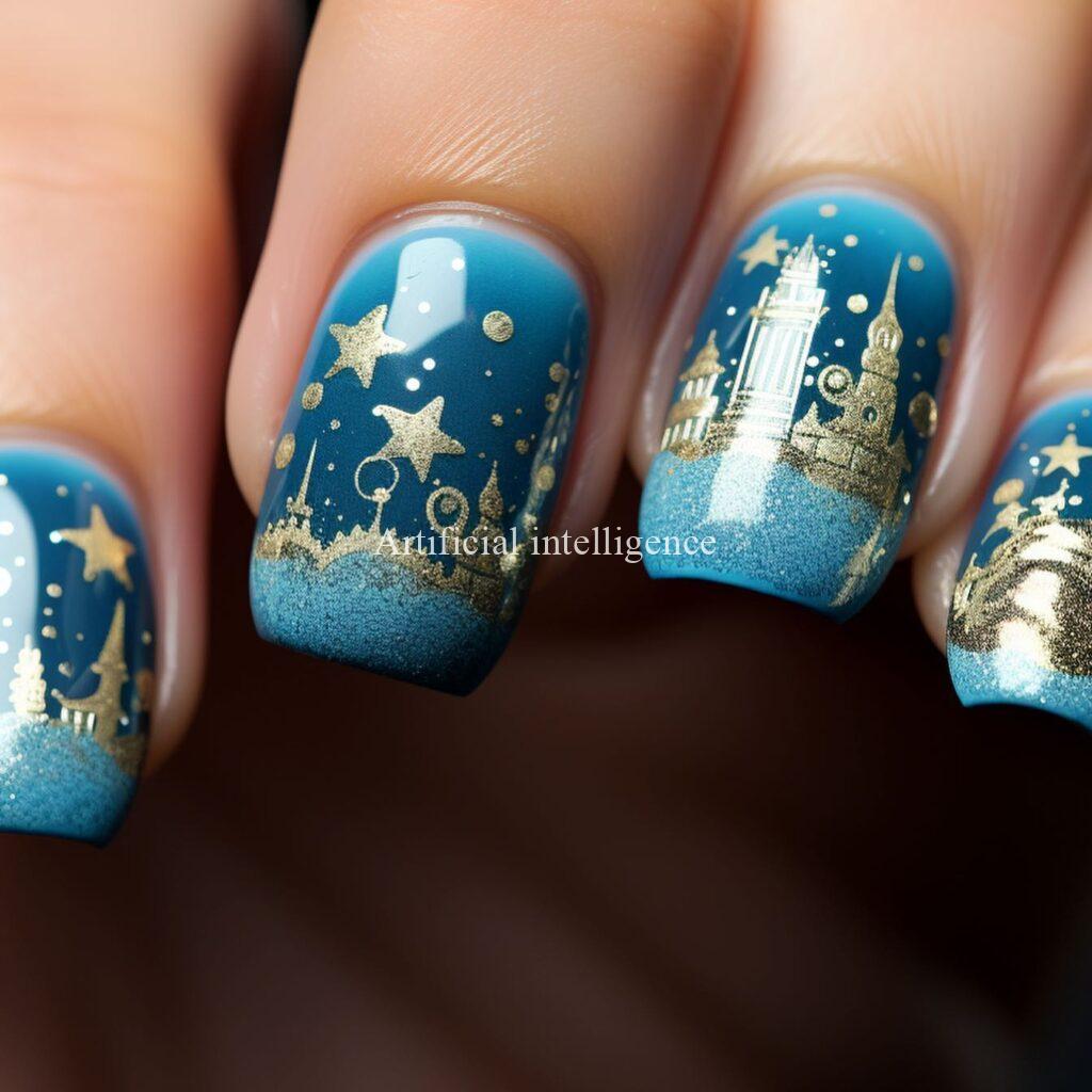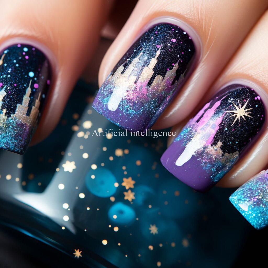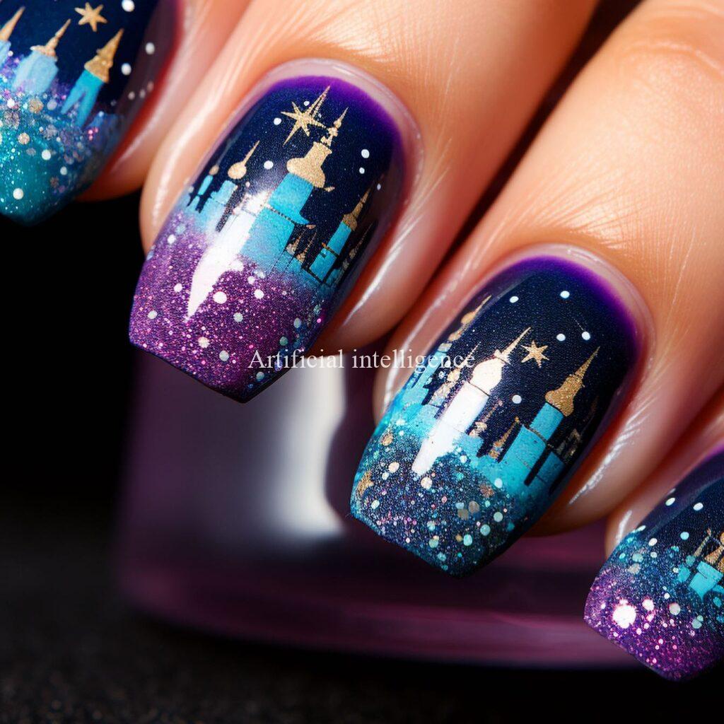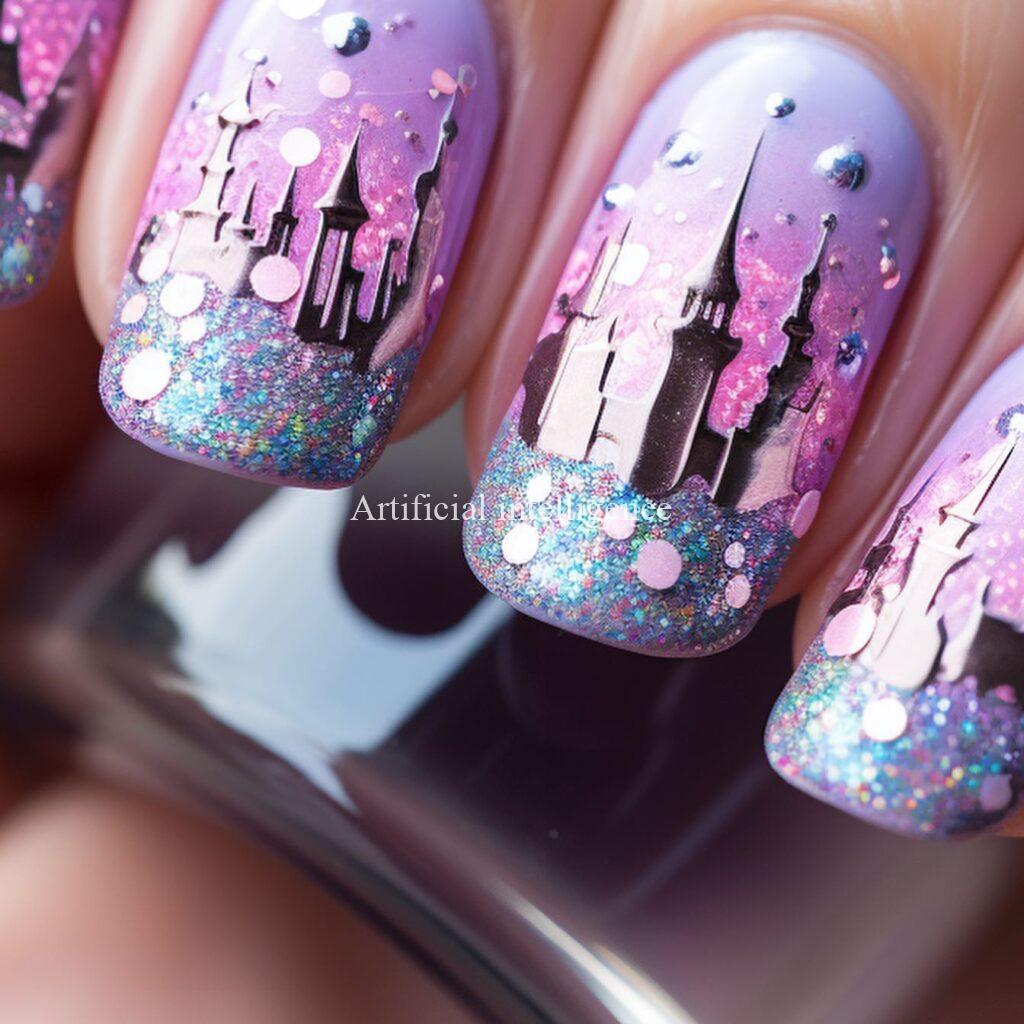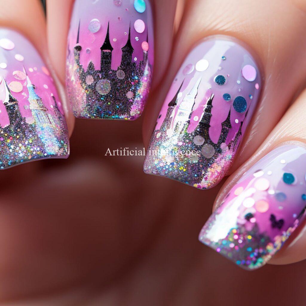 塔・お城イメージのネイルをコンセプトにAIイラストツールで架空の画像を生成しました。