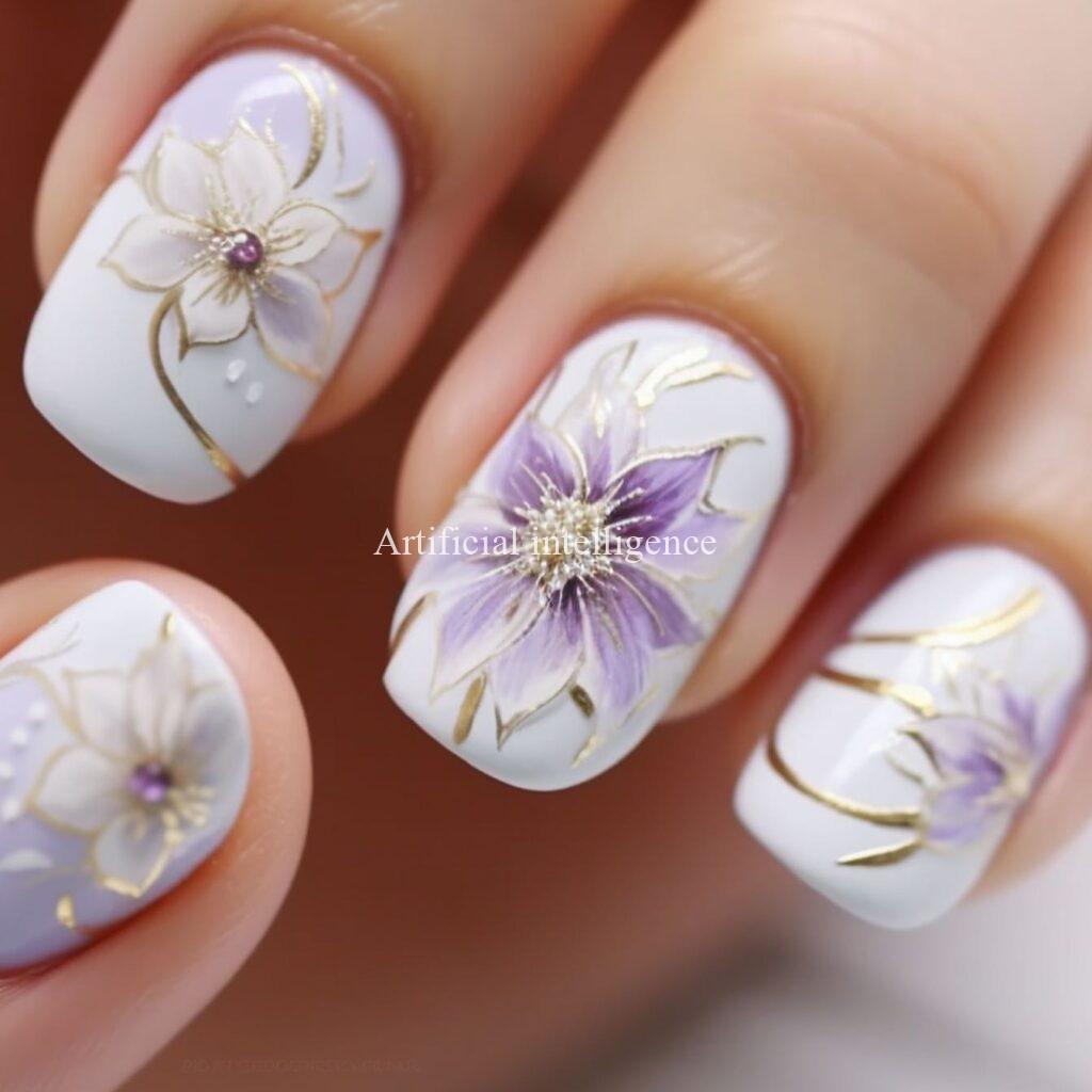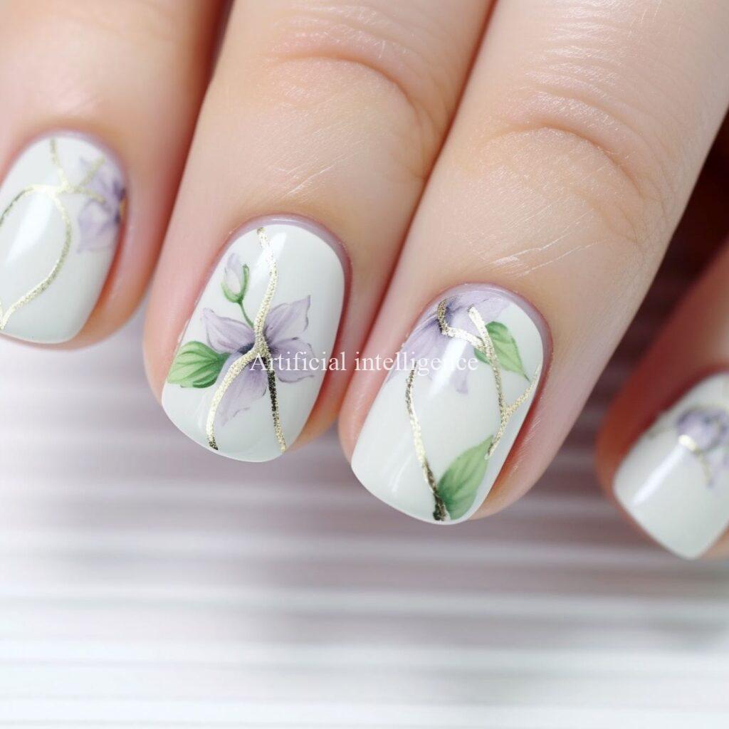 クレマチス風のネイルをコンセプトにAIイラストツールで架空の画像を生成しました。