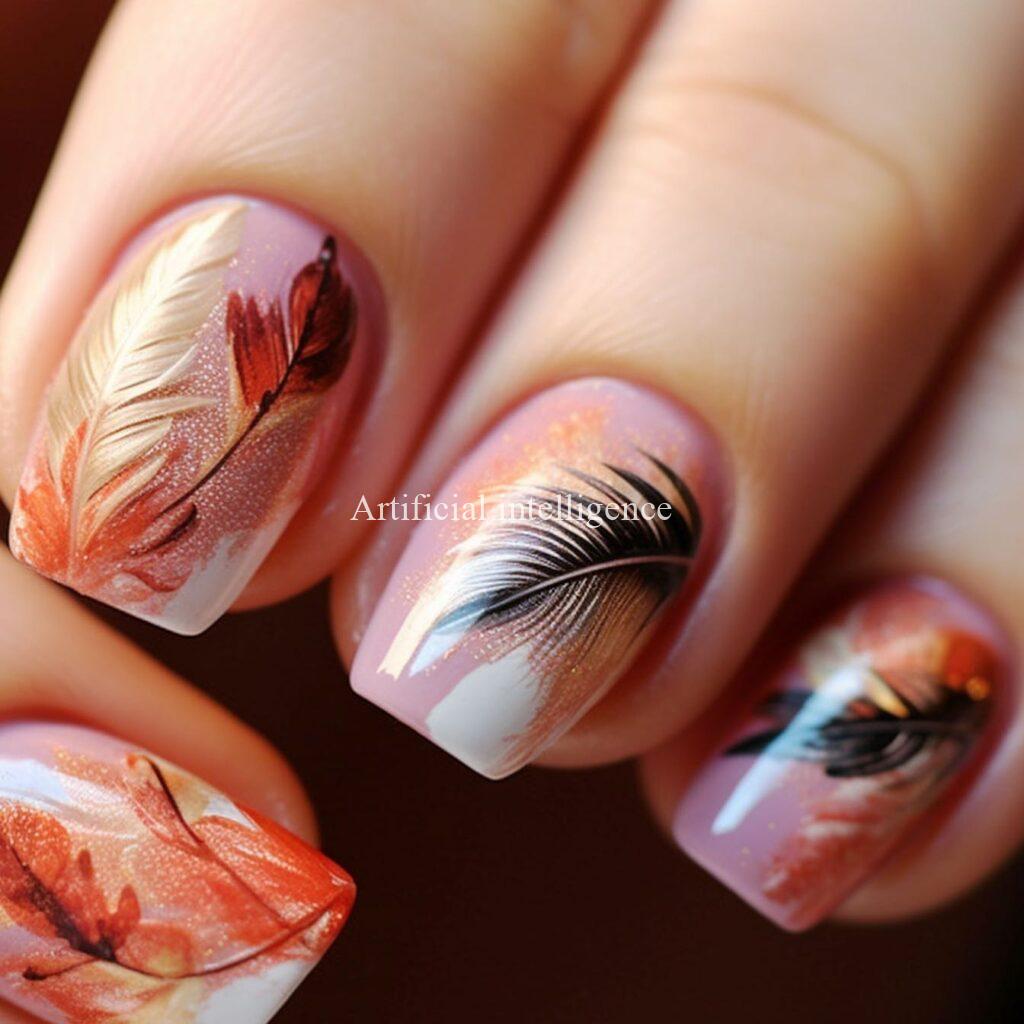 優雅な羽根のネイル 🪶をコンセプトにAIイラストツールで架空の画像を生成しました。