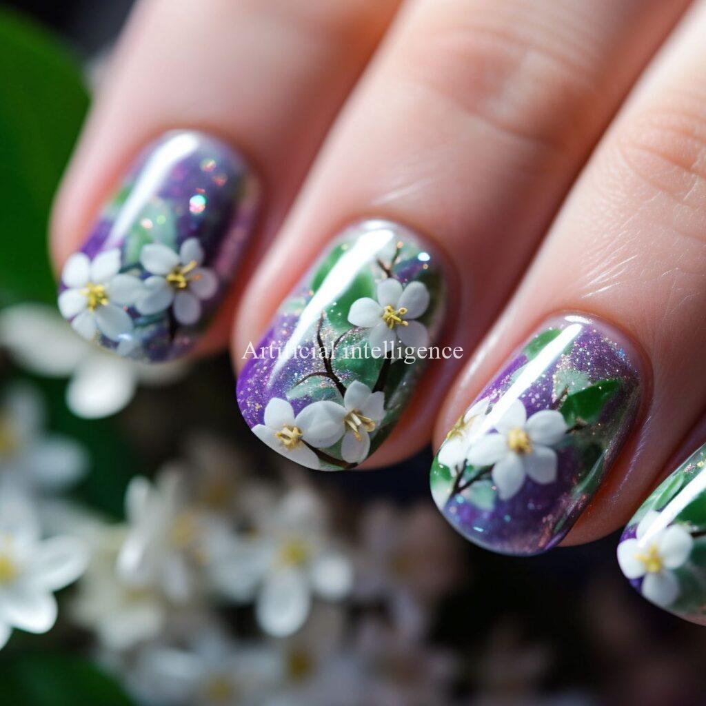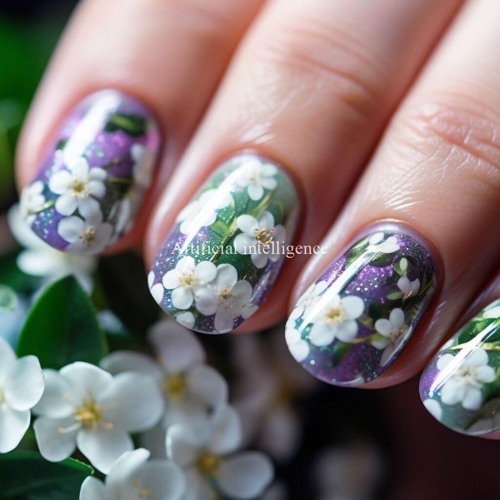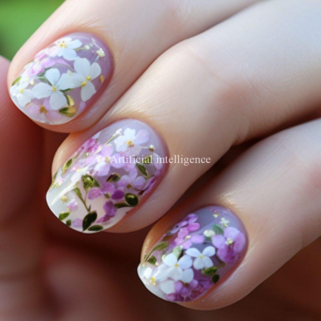 庭に咲く芳しい花のネイルをコンセプトにAIイラストツールで架空の画像を生成しました。