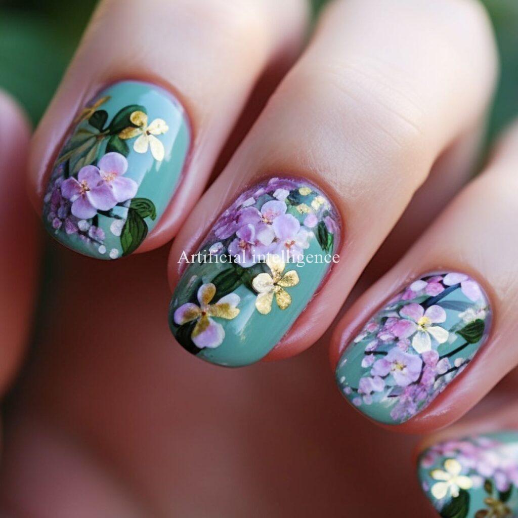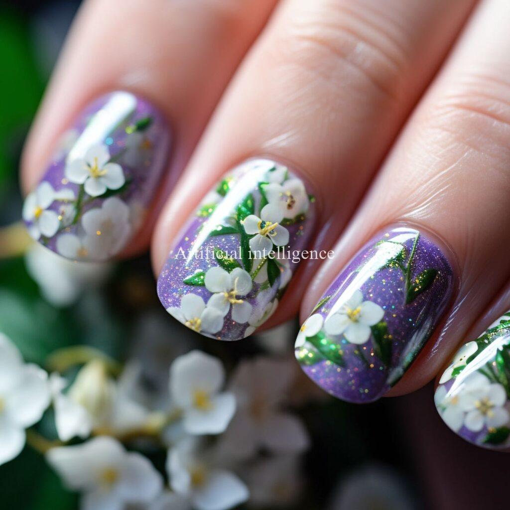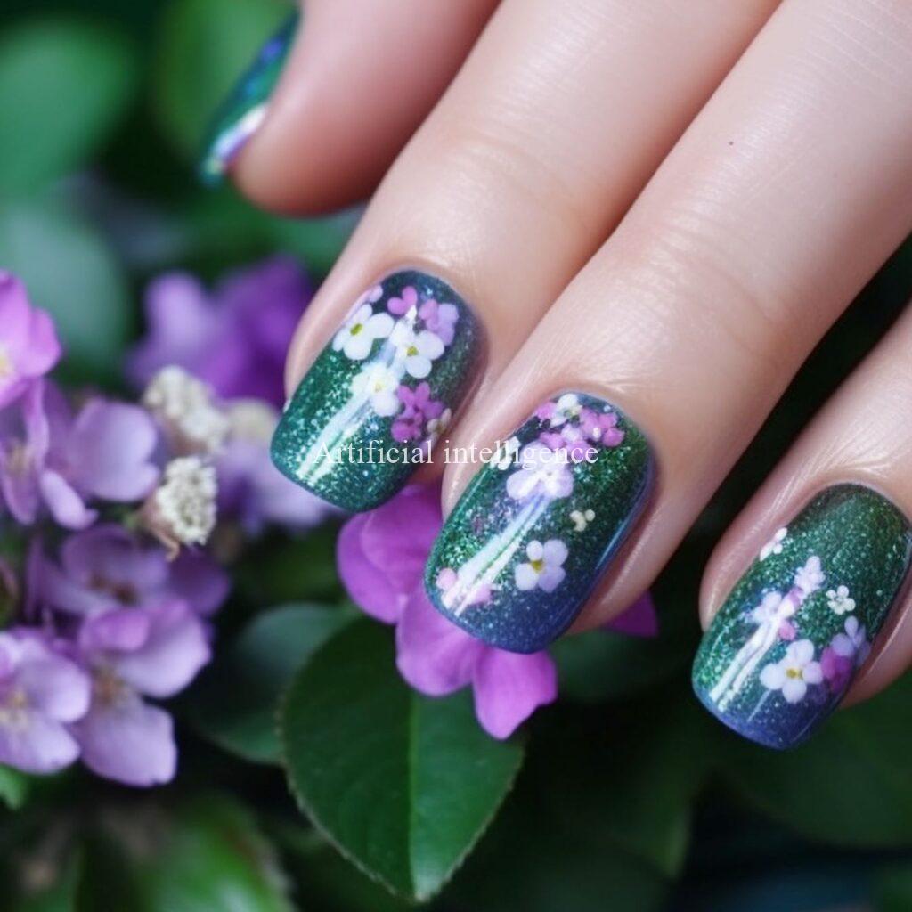 庭に咲く芳しい花のネイルをコンセプトにAIイラストツールで架空の画像を生成しました。