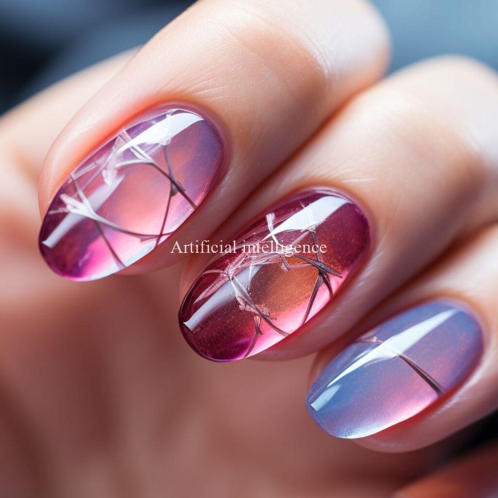 朝焼けの空のネイルをコンセプトにAIイラストツールで架空の画像を生成しました。