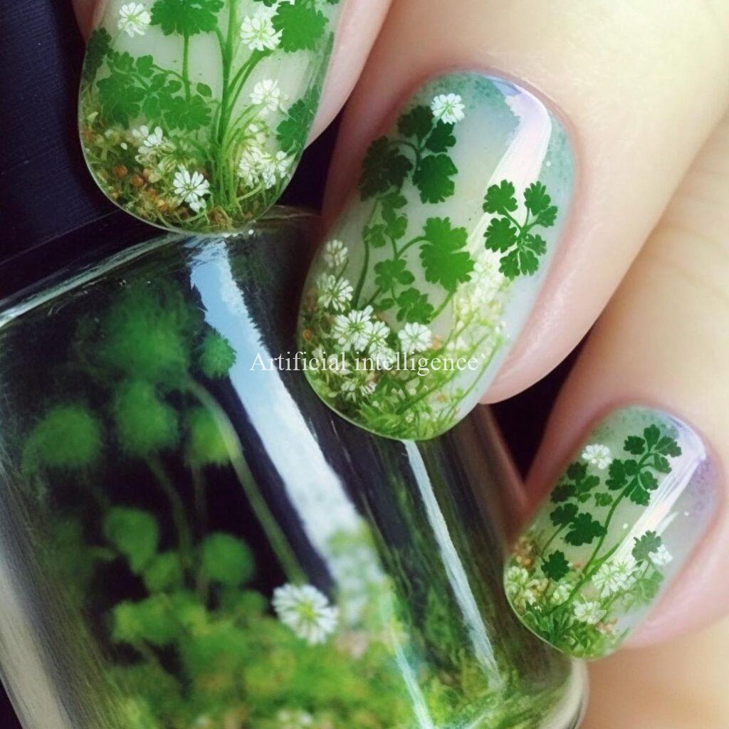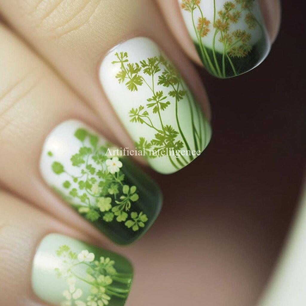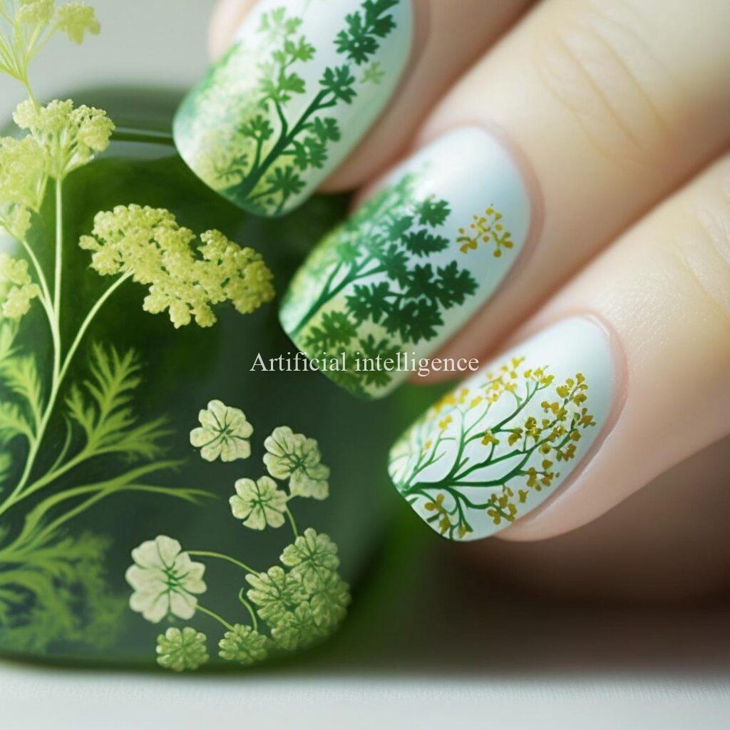 家庭菜園風ハーバルネイル 🌿(だいたいパセリ)をコンセプトにAIイラストツールで架空の画像を生成しました。