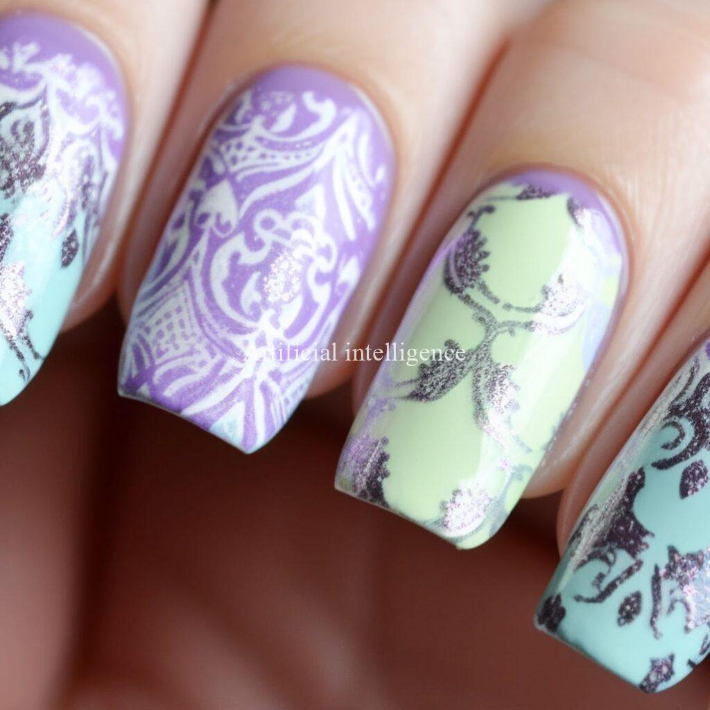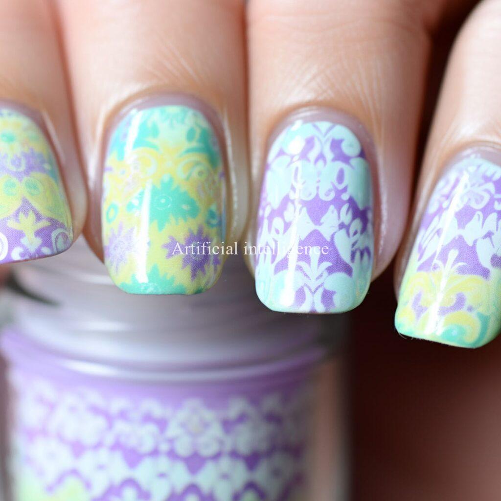 パステルダマスクネイルをコンセプトにAIイラストツールで架空の画像を生成しました。