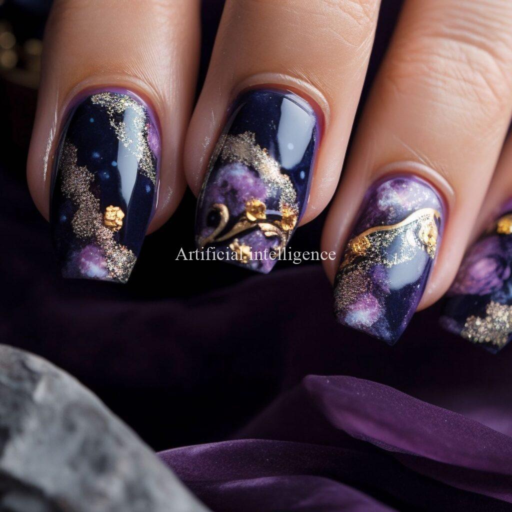purple milkyway nails by AI