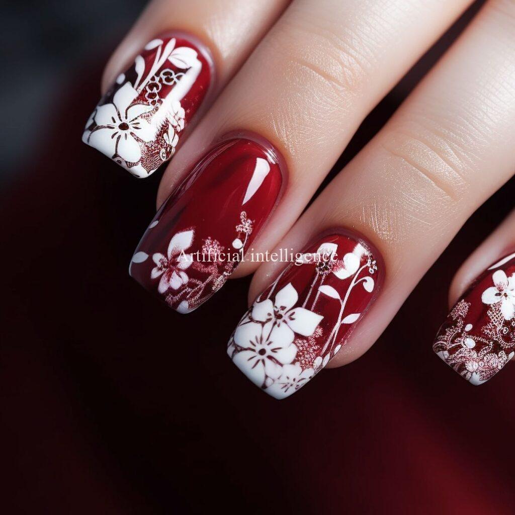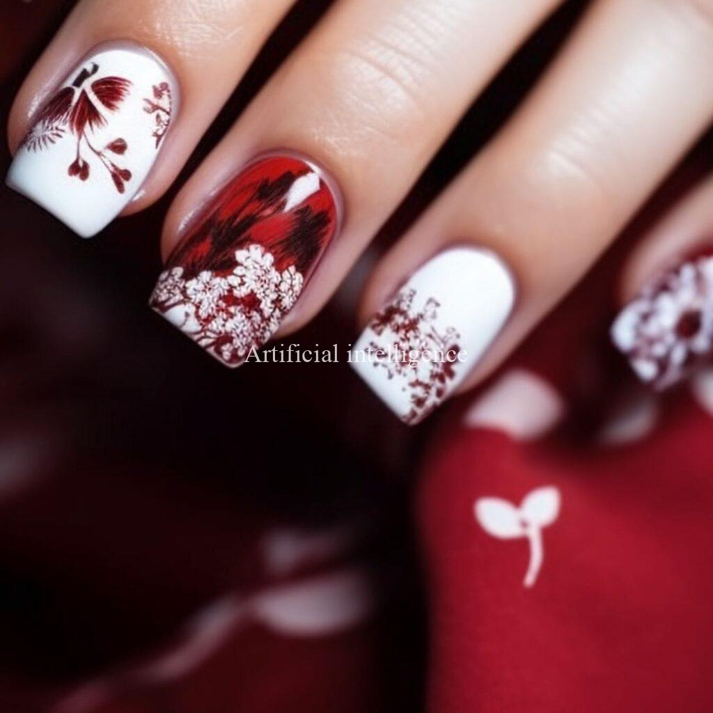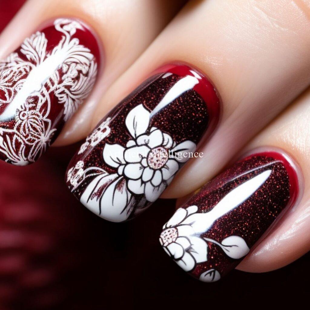 絵付け風バーガンディーネイルをコンセプトにAIイラストツールで架空の画像を生成しました。