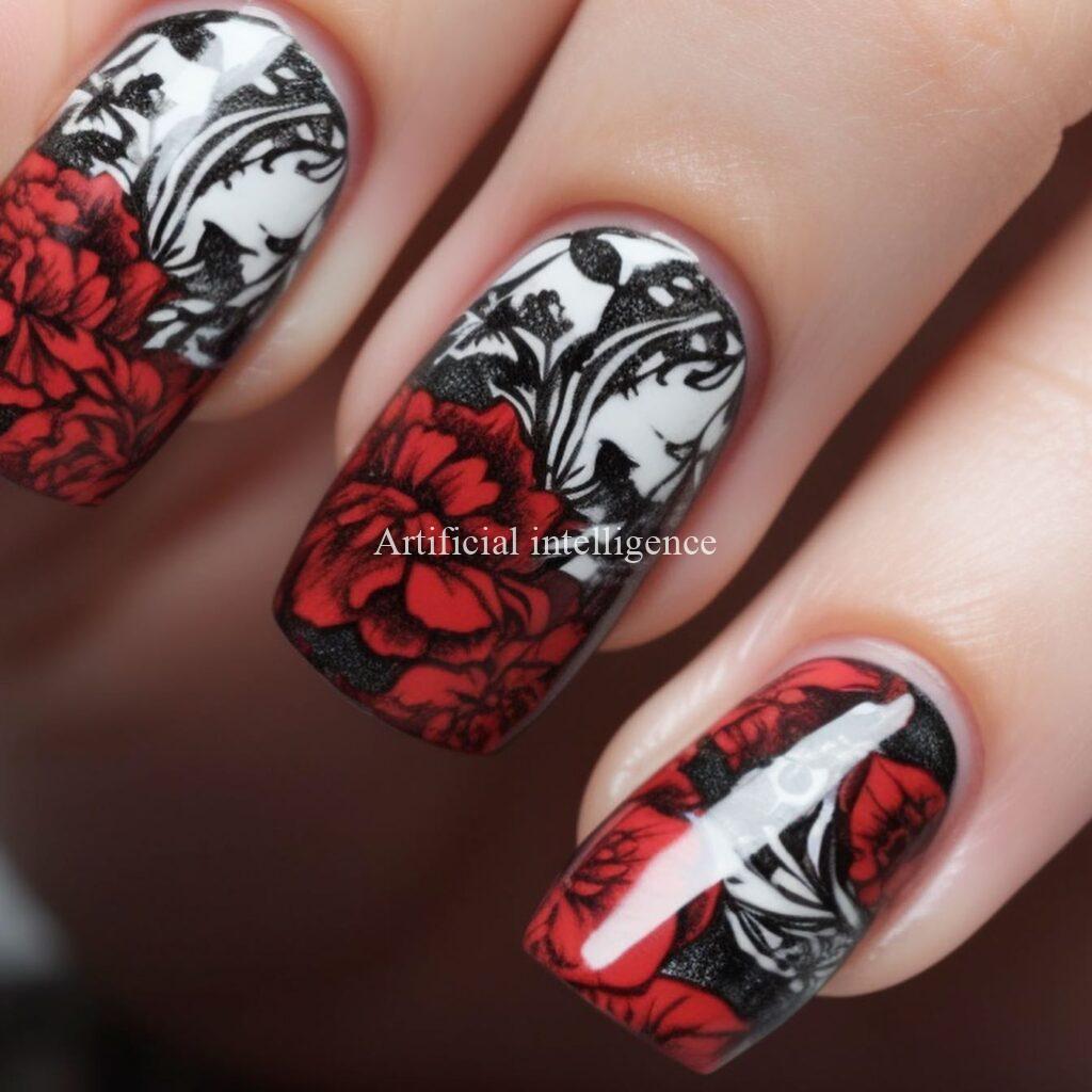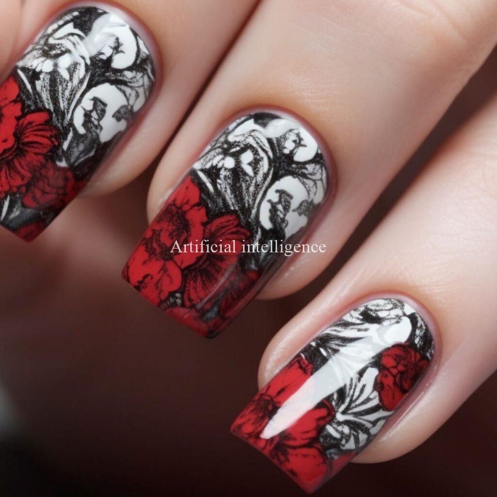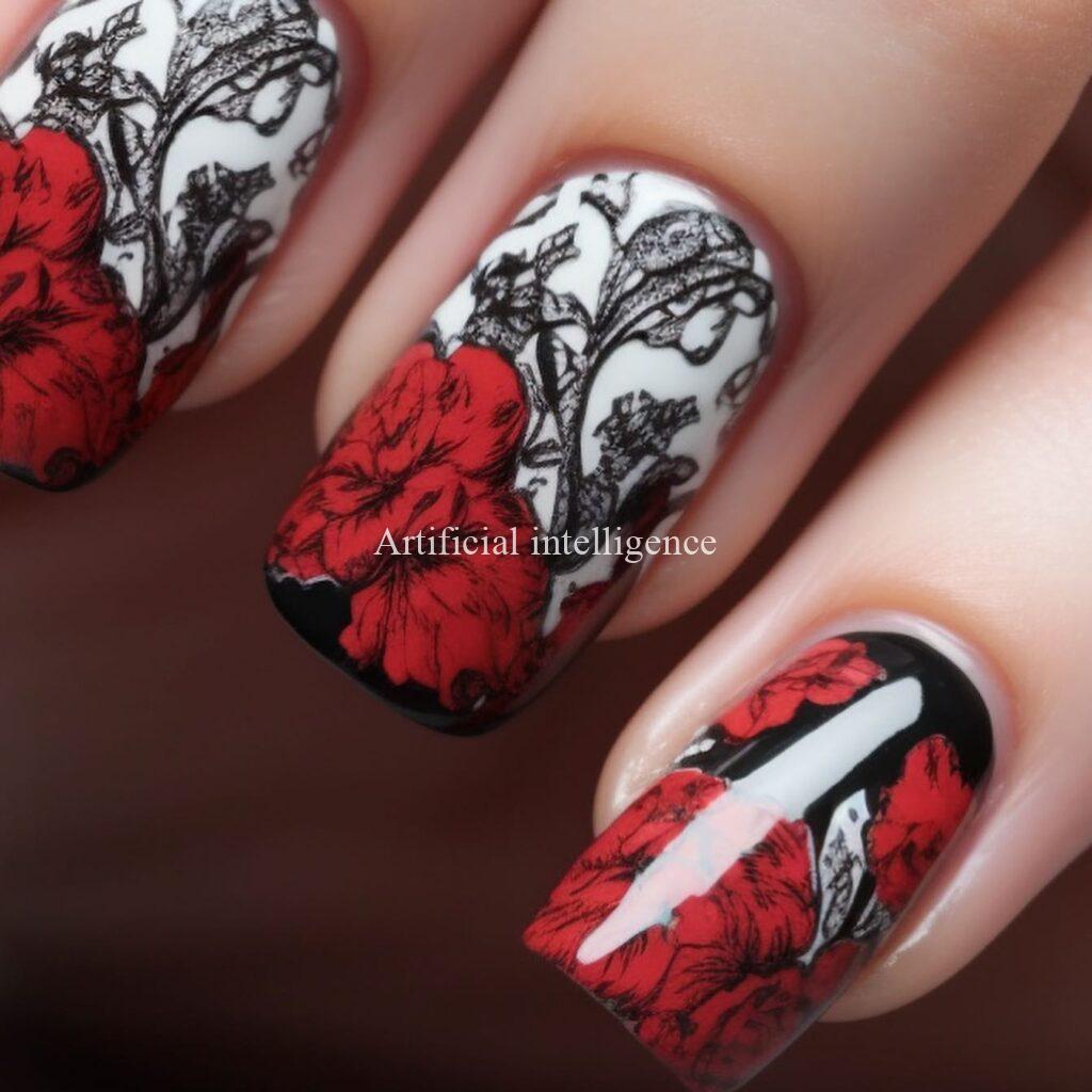 フラメンコドレス風ネイルをコンセプトにAIイラストツールで架空の画像を生成しました。