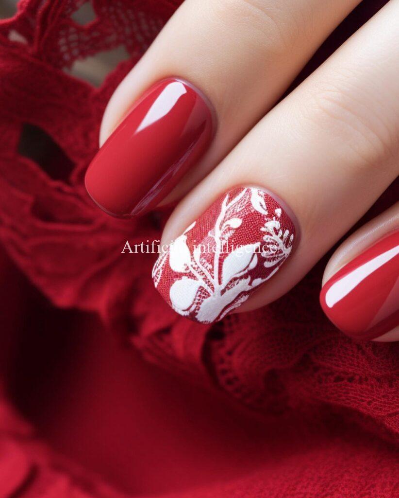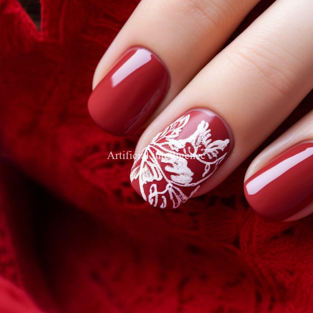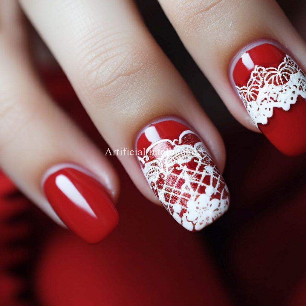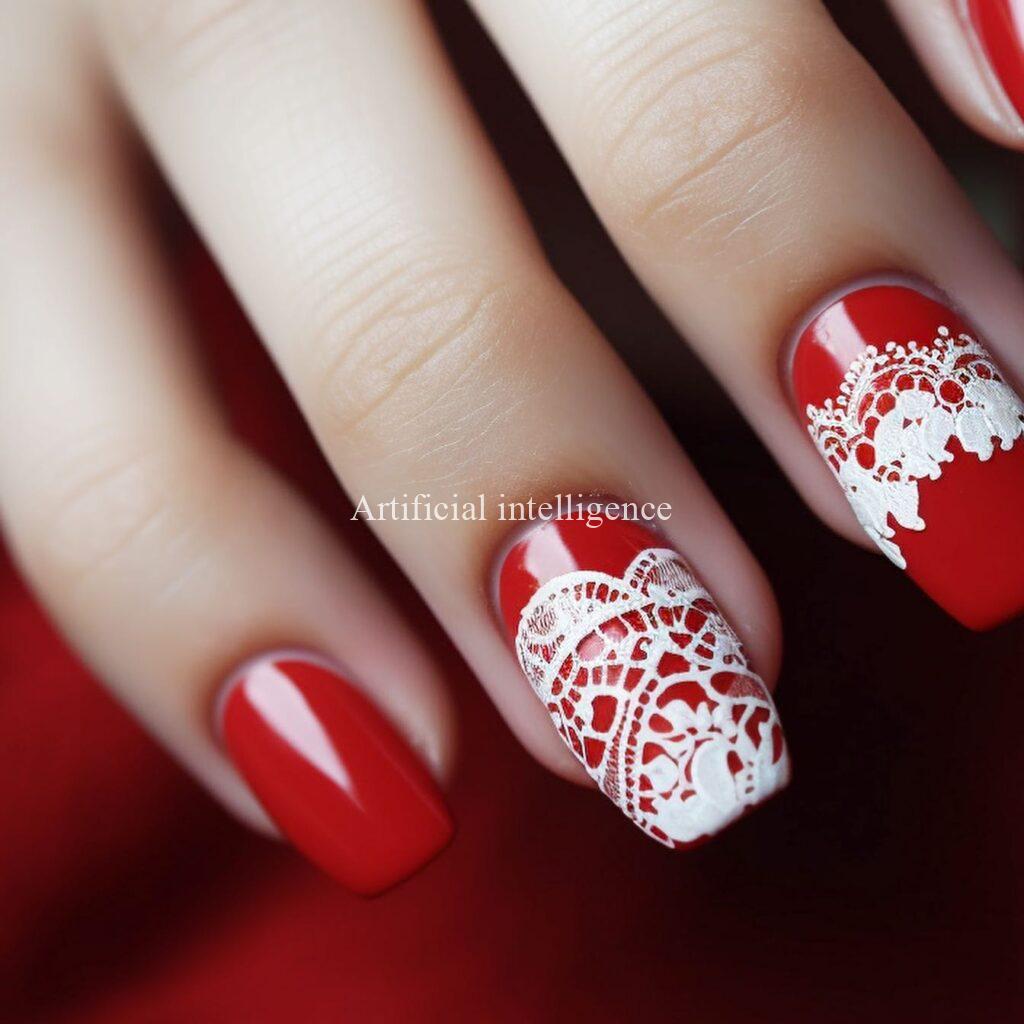 レース柄の赤ネイルをコンセプトにAIイラストツールで架空の画像を生成しました。