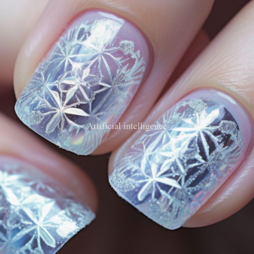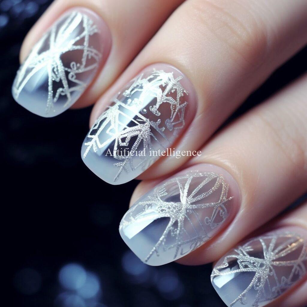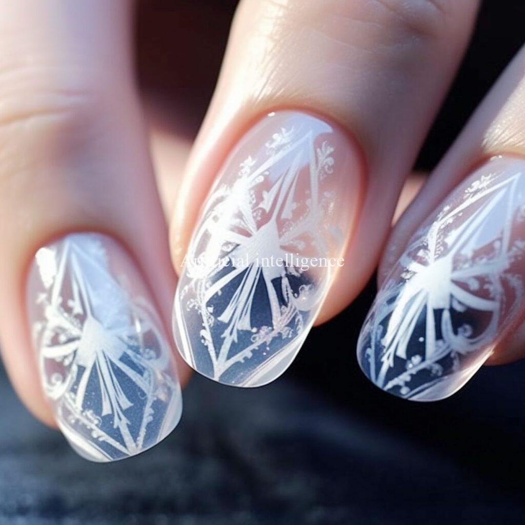 冬の霜・フロストネイルをコンセプトにAIイラストツールで架空の画像を生成しました。