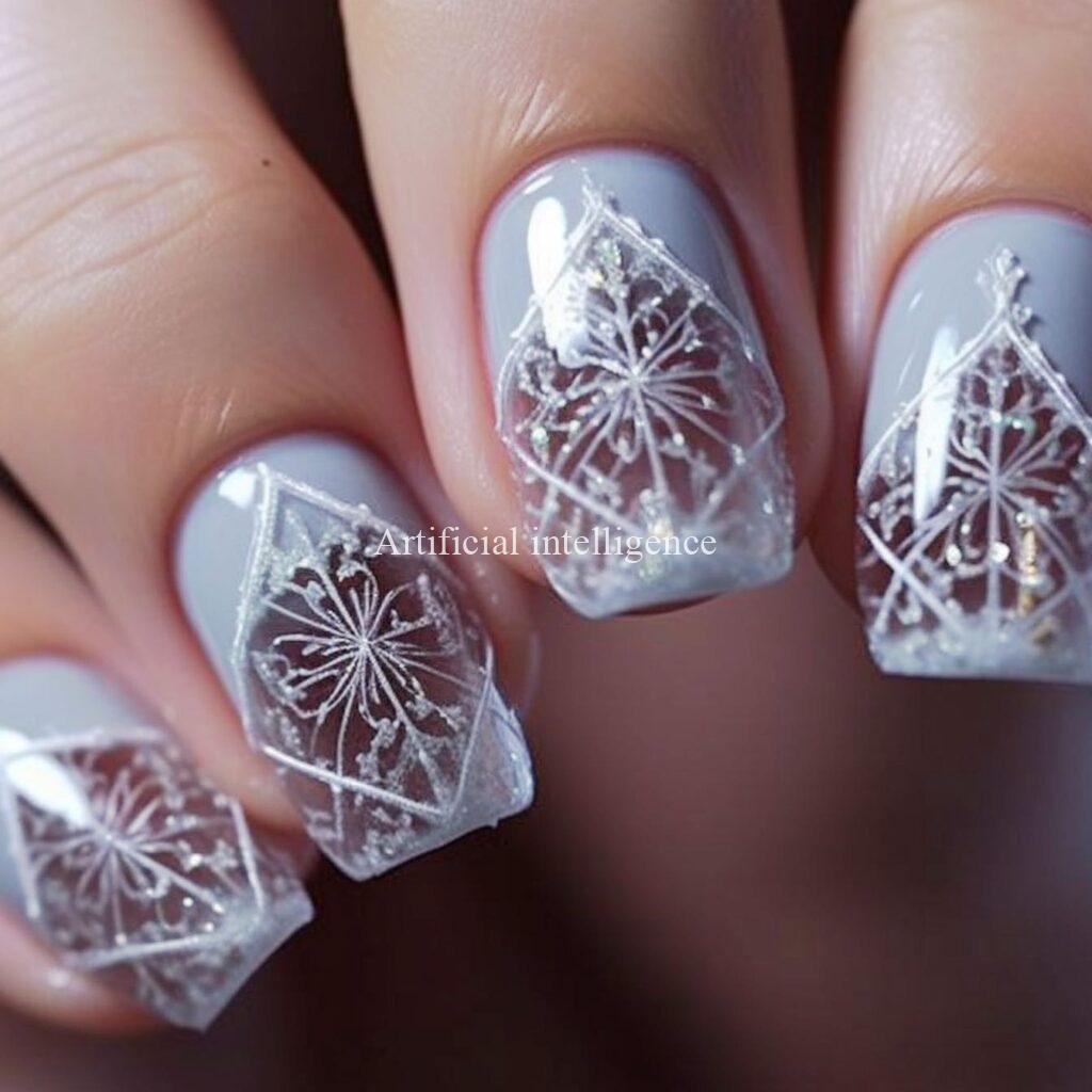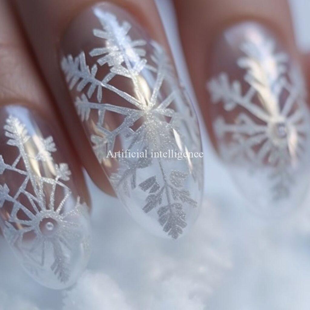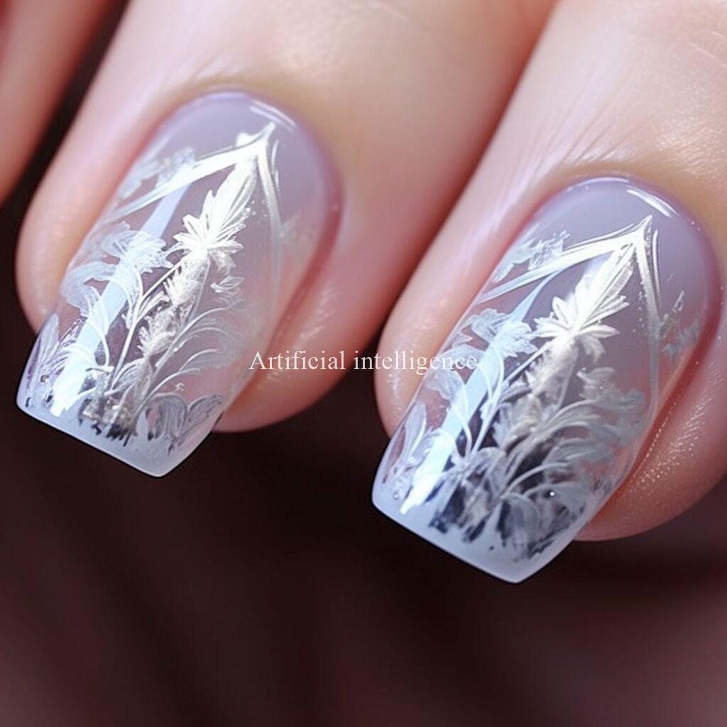 冬の霜・フロストネイルをコンセプトにAIイラストツールで架空の画像を生成しました。