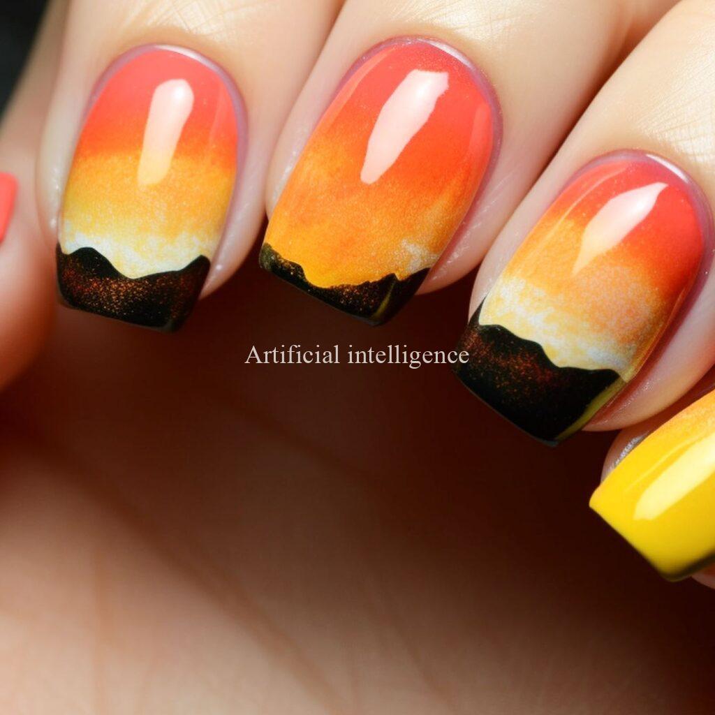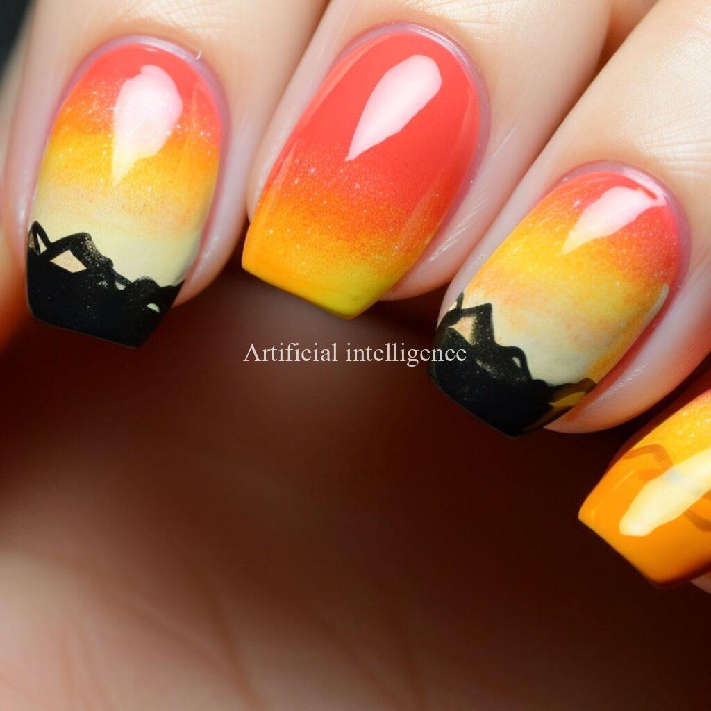 夕焼けのネイルをコンセプトにAIイラストツールで架空の画像を生成しました。