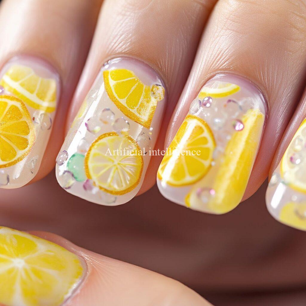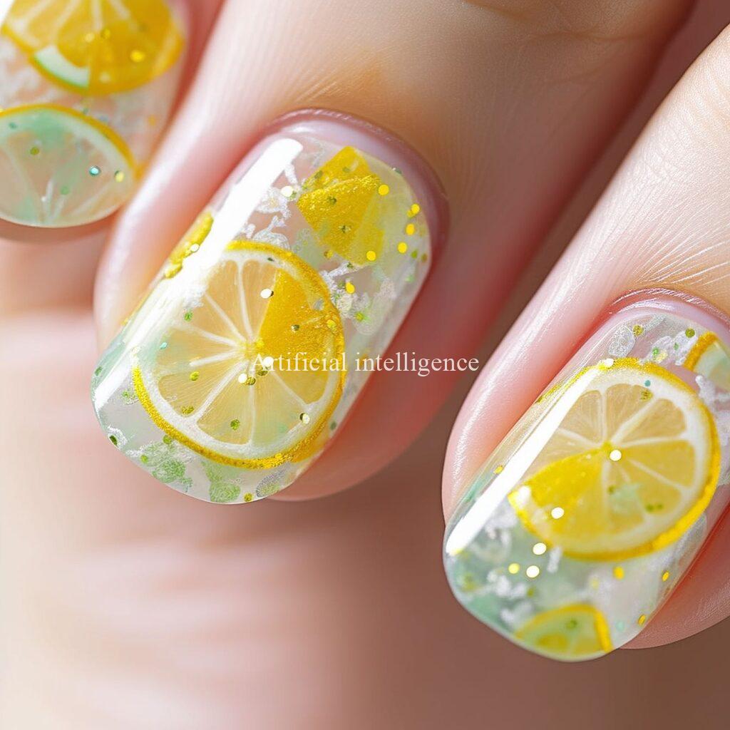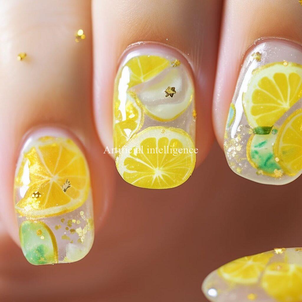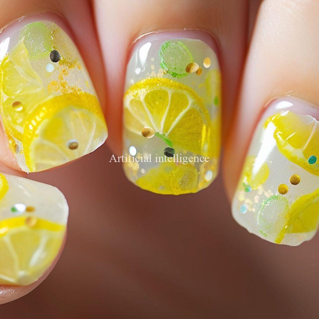 さわやかレモンゼリーのネイル🍋をコンセプトにAIイラストツールで架空の画像を生成しました。