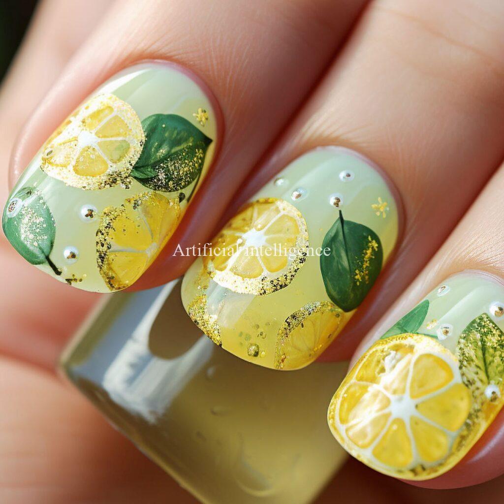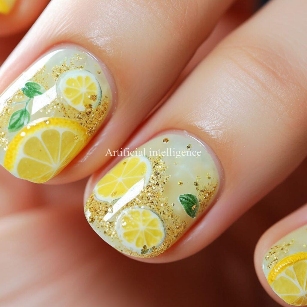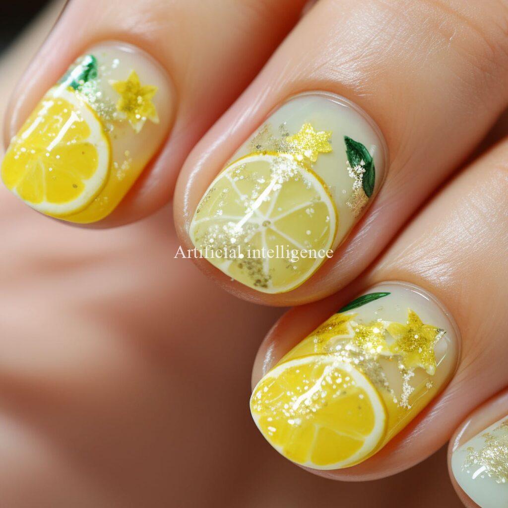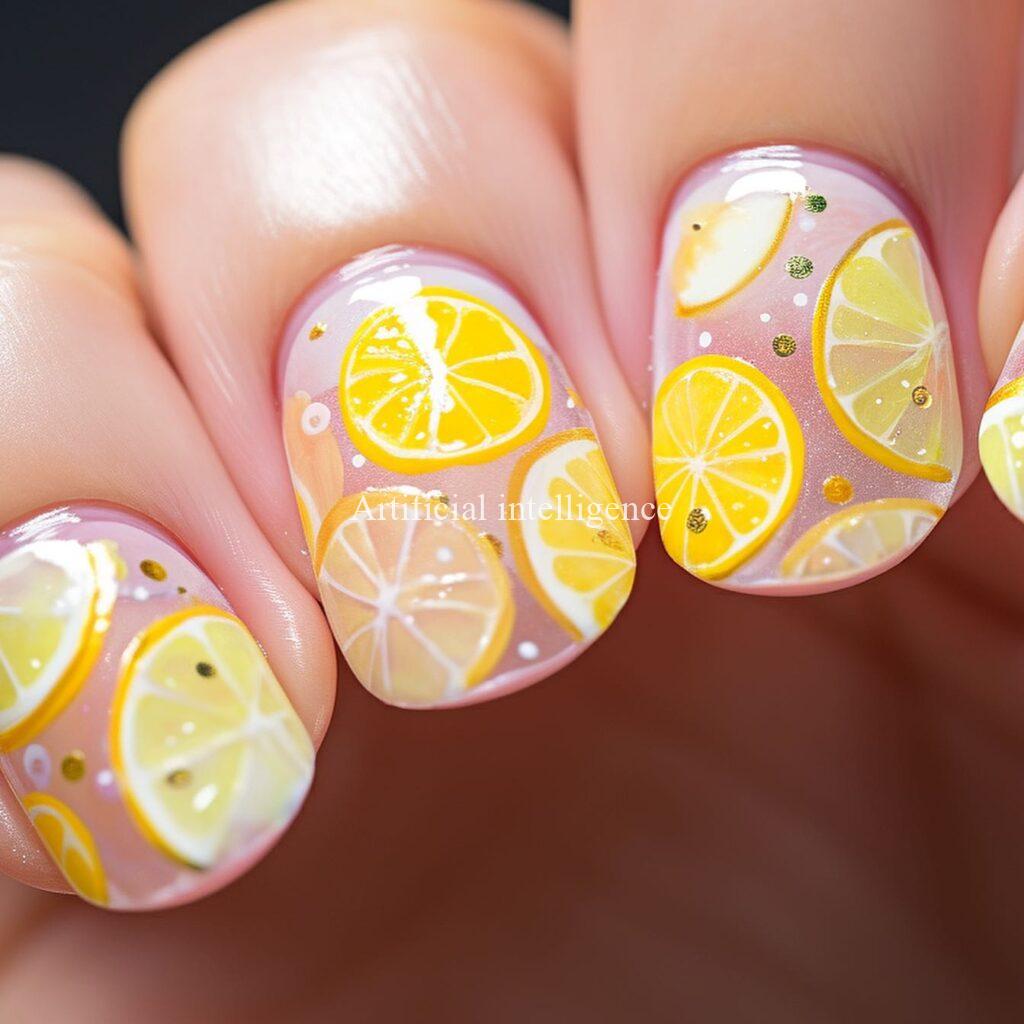 さわやかレモンゼリーのネイル🍋をコンセプトにAIイラストツールで架空の画像を生成しました。